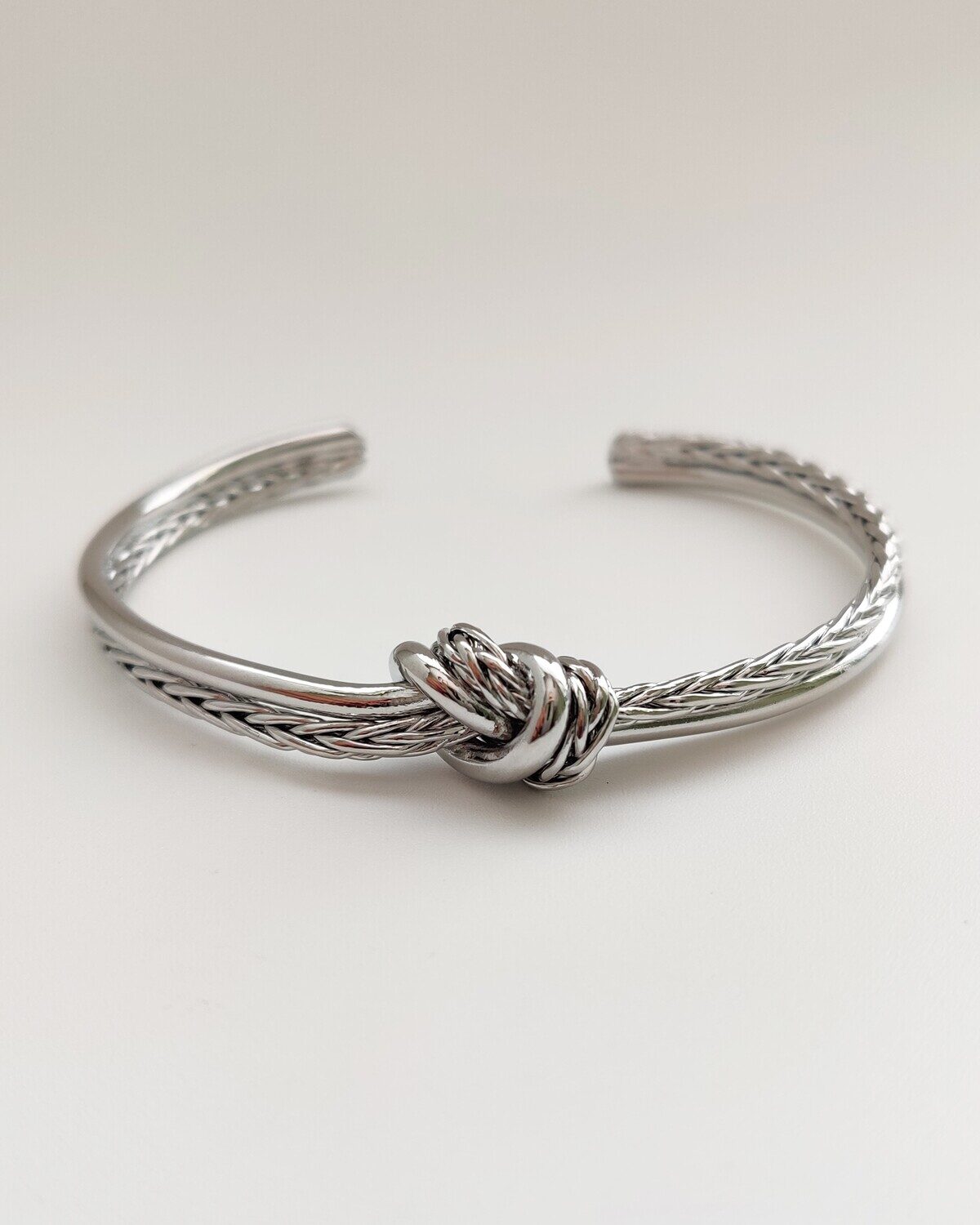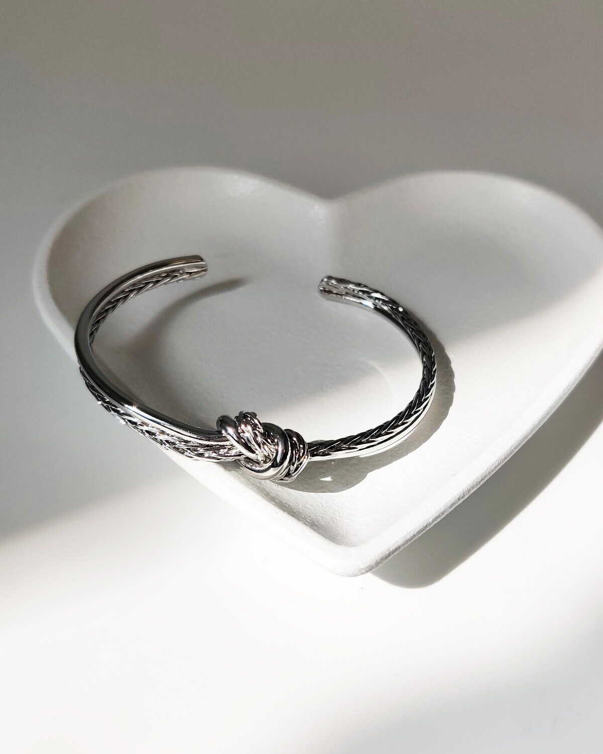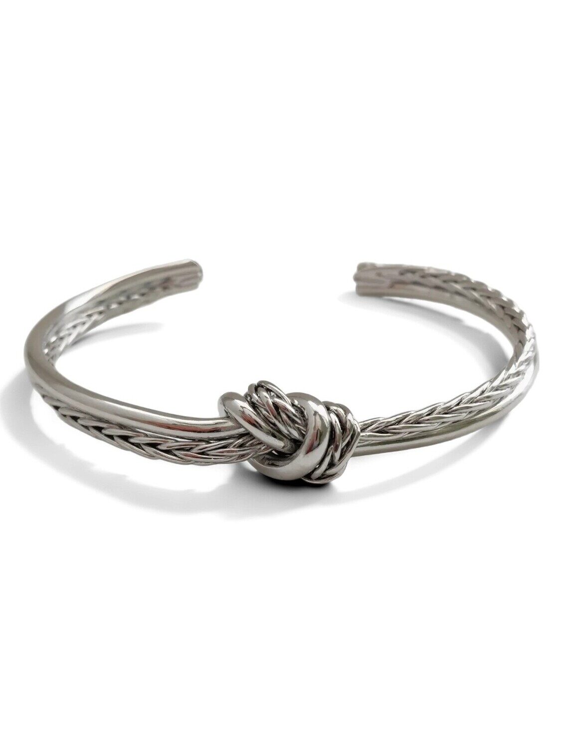 Стильный и лаконичный браслет-обруч — это аксессуар, который подойдёт как для повседневного образа, так и для особых случаев. Он выполнен из прочного гипоаллергенного ювелирного сплава, что обеспечивает его долговечность и устойчивость к повреждениям.