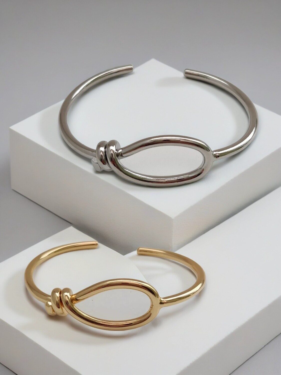 Стильный и лаконичный браслет-обруч — это аксессуар, который подойдёт как для повседневного образа, так и для особых случаев. Он выполнен из прочного гипоаллергенного ювелирного сплава, что обеспечивает его долговечность и устойчивость к повреждениям.