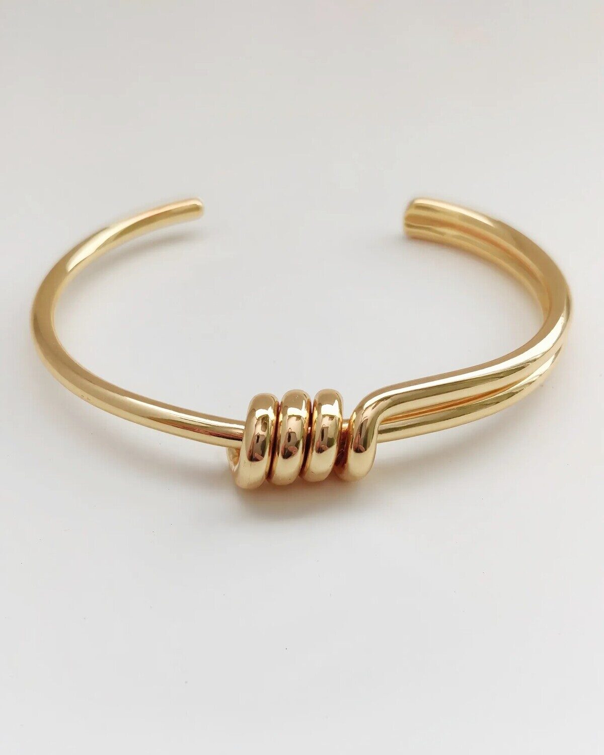 Стильный и лаконичный браслет-обруч — это аксессуар, который подойдёт как для повседневного образа, так и для особых случаев. Он выполнен из прочного гипоаллергенного ювелирного сплава, что обеспечивает его долговечность и устойчивость к повреждениям.
