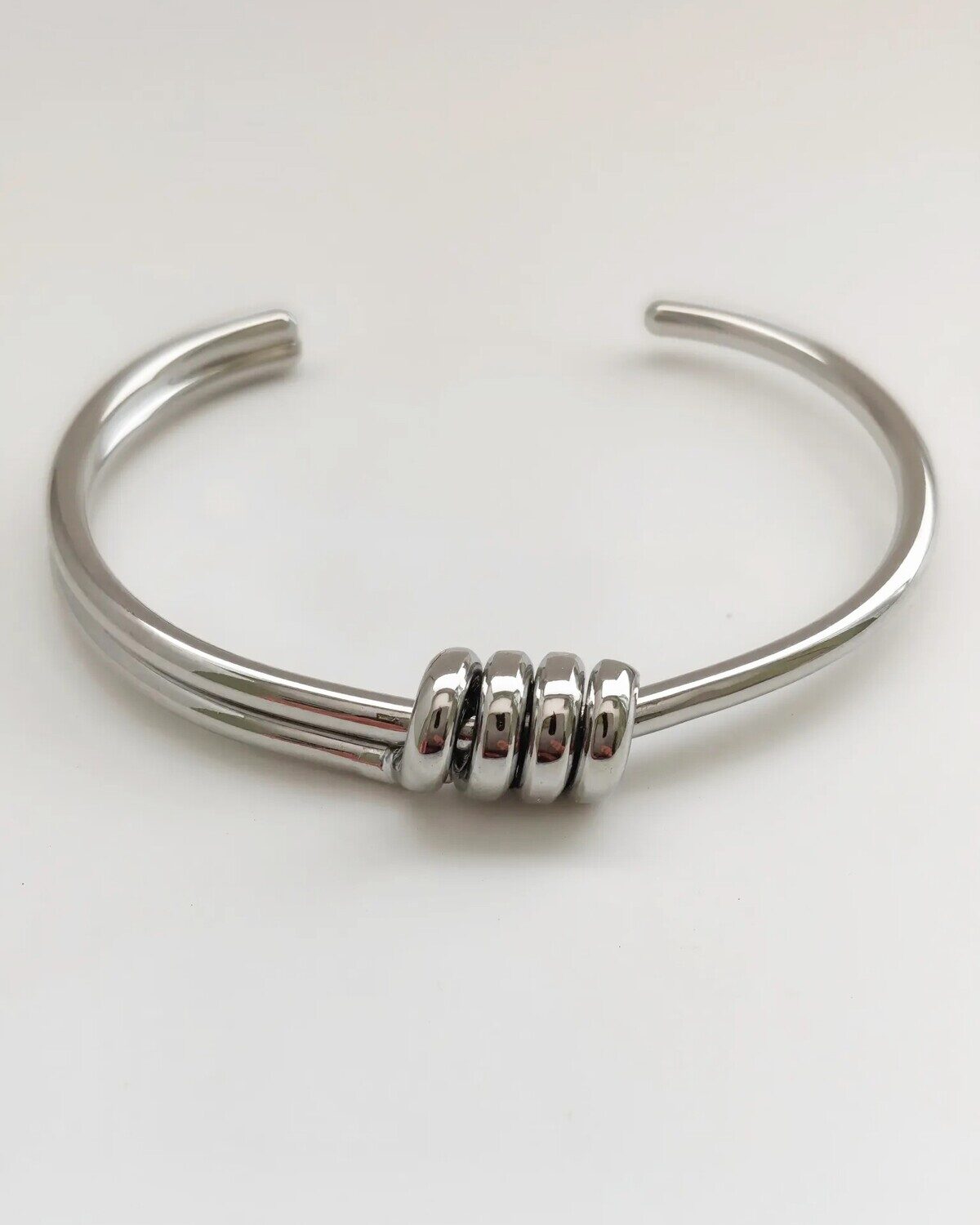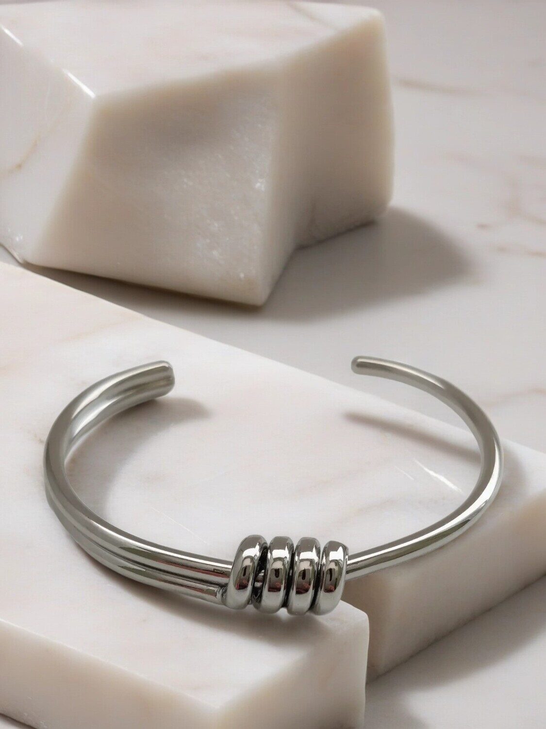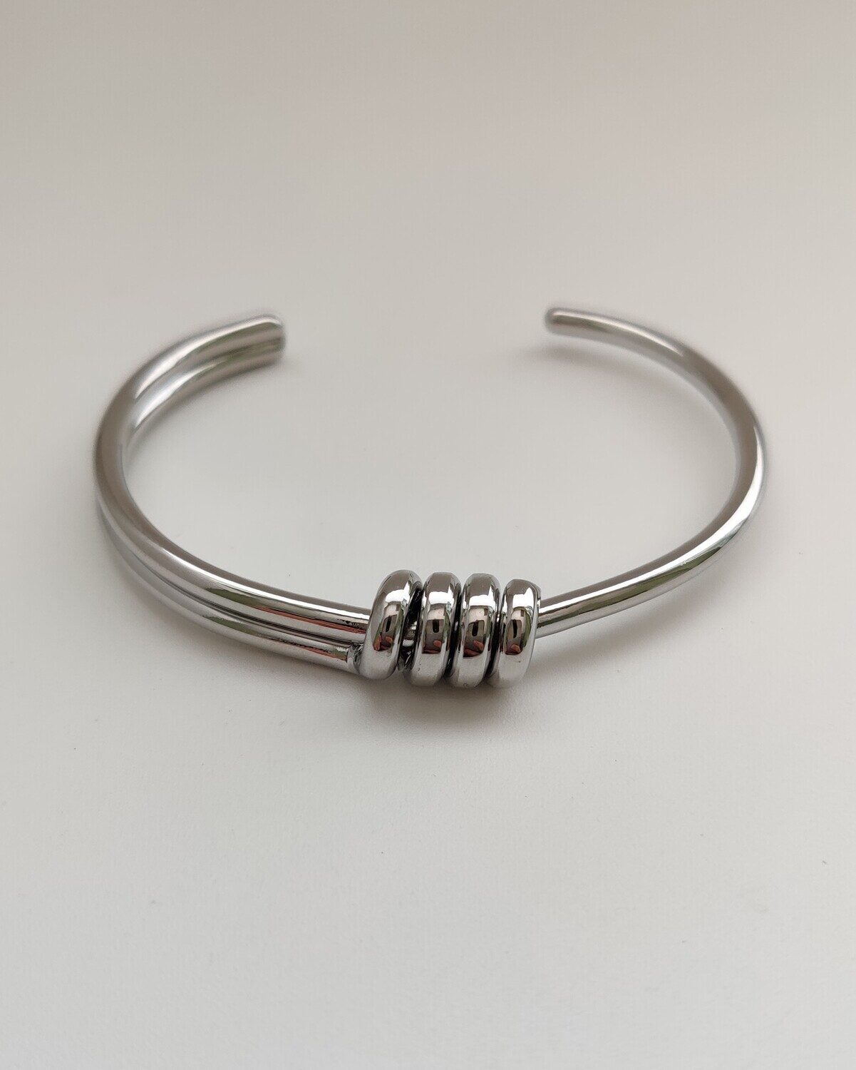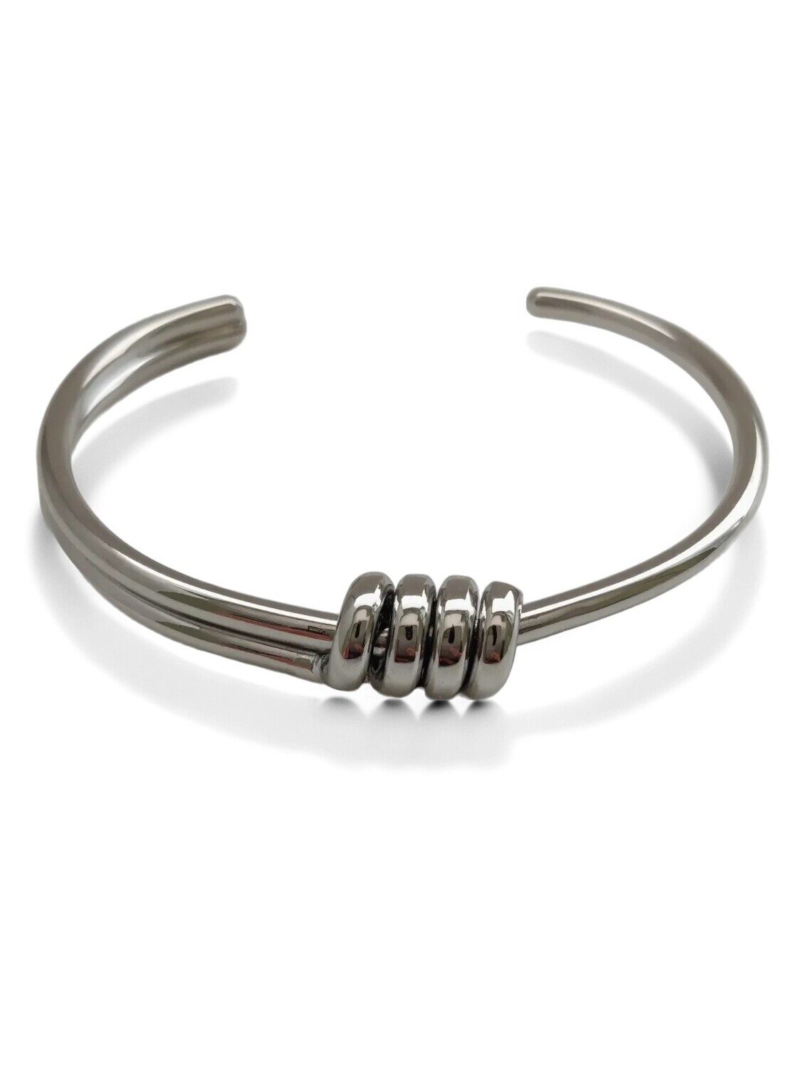 Стильный и лаконичный браслет-обруч — это аксессуар, который подойдёт как для повседневного образа, так и для особых случаев. Он выполнен из прочного гипоаллергенного ювелирного сплава, что обеспечивает его долговечность и устойчивость к повреждениям.