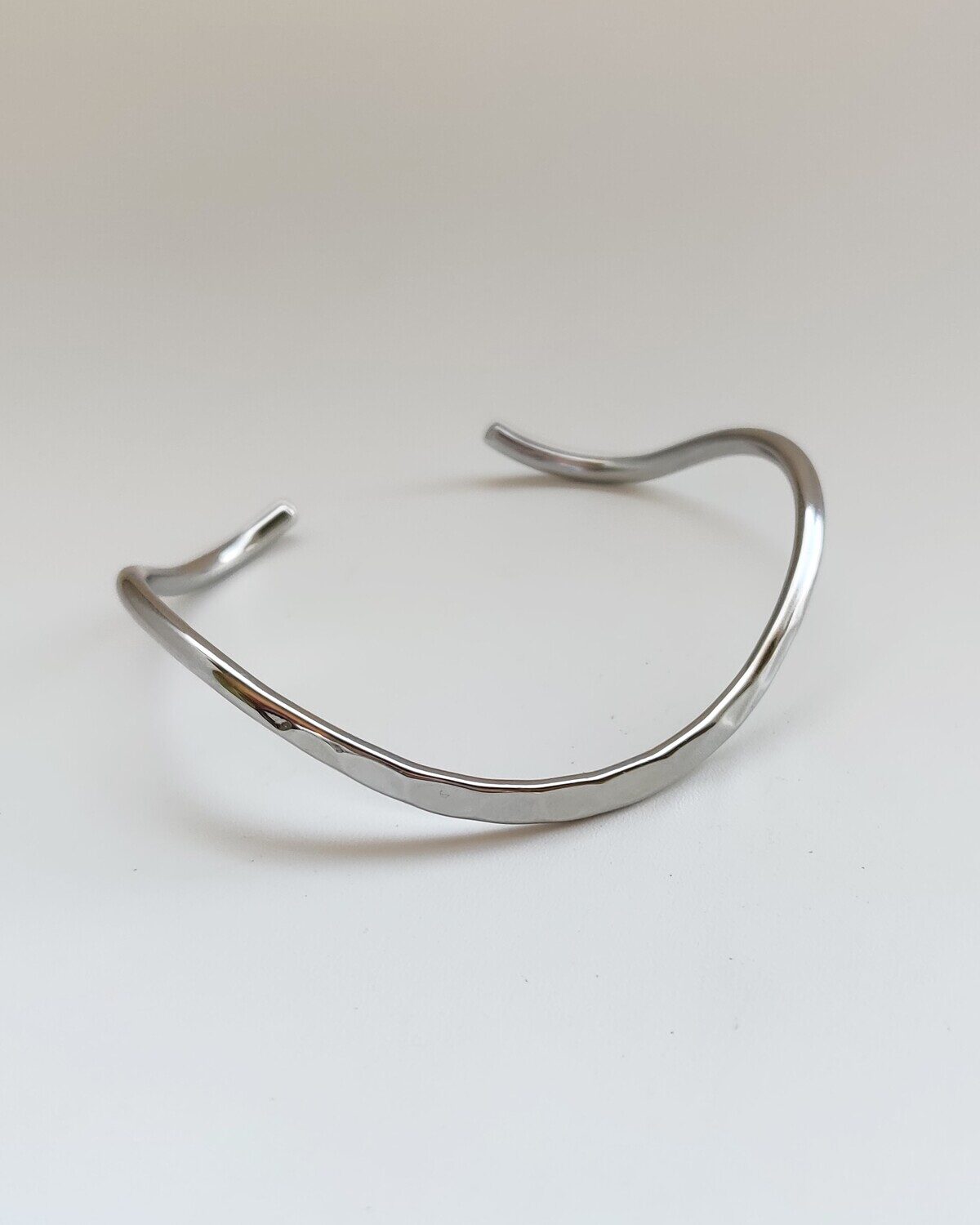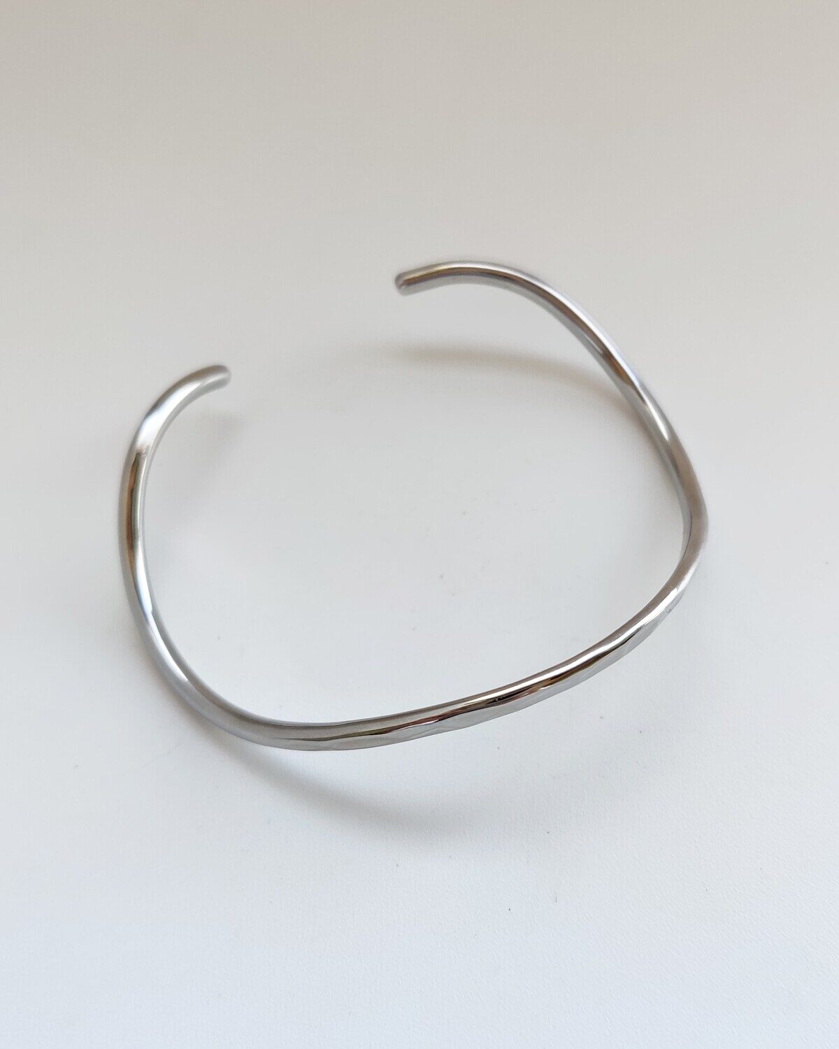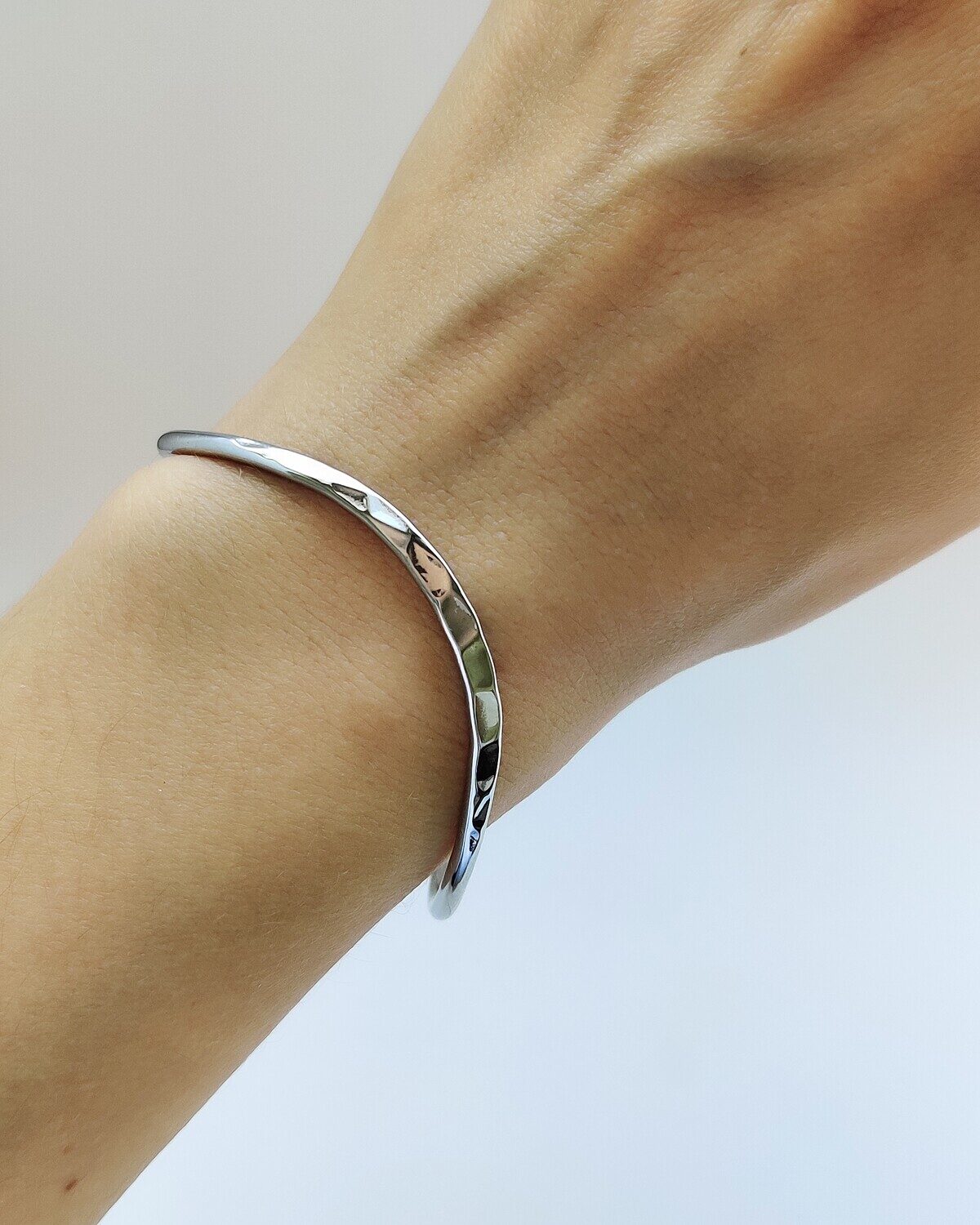 Стильный и лаконичный браслет-обруч — это аксессуар, который подойдёт как для повседневного образа, так и для особых случаев. Он выполнен из прочного гипоаллергенного ювелирного сплава, что обеспечивает его долговечность и устойчивость к повреждениям.