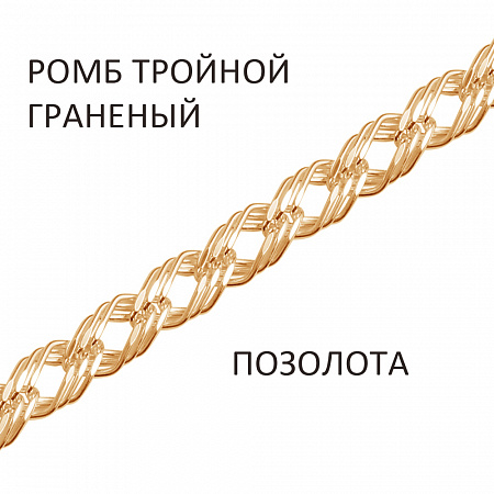 Цепь Ромб тройной с алмазной огранкой золочёный