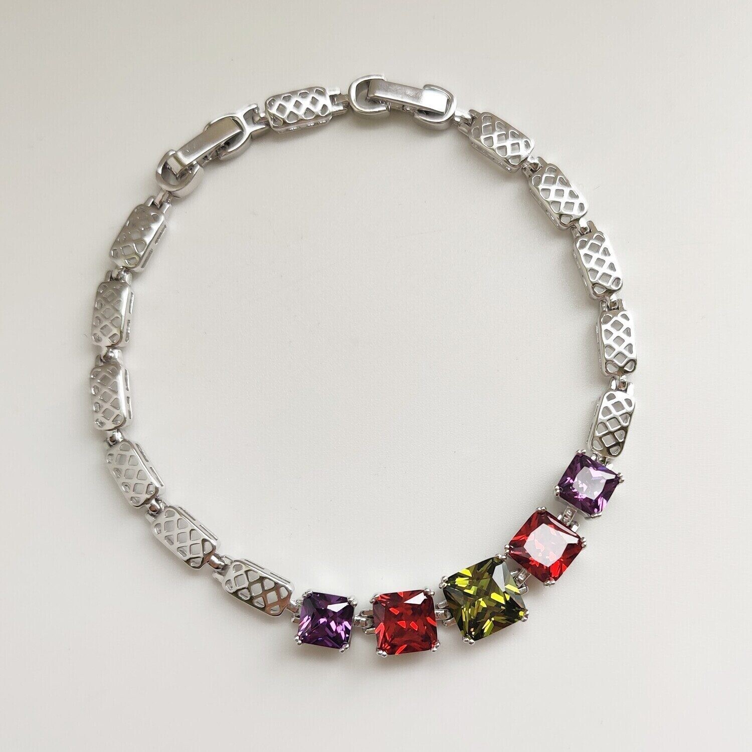Браслет с цирконами из ювелирного сплава — стильное и яркое украшение, дополняющее любой образ.
