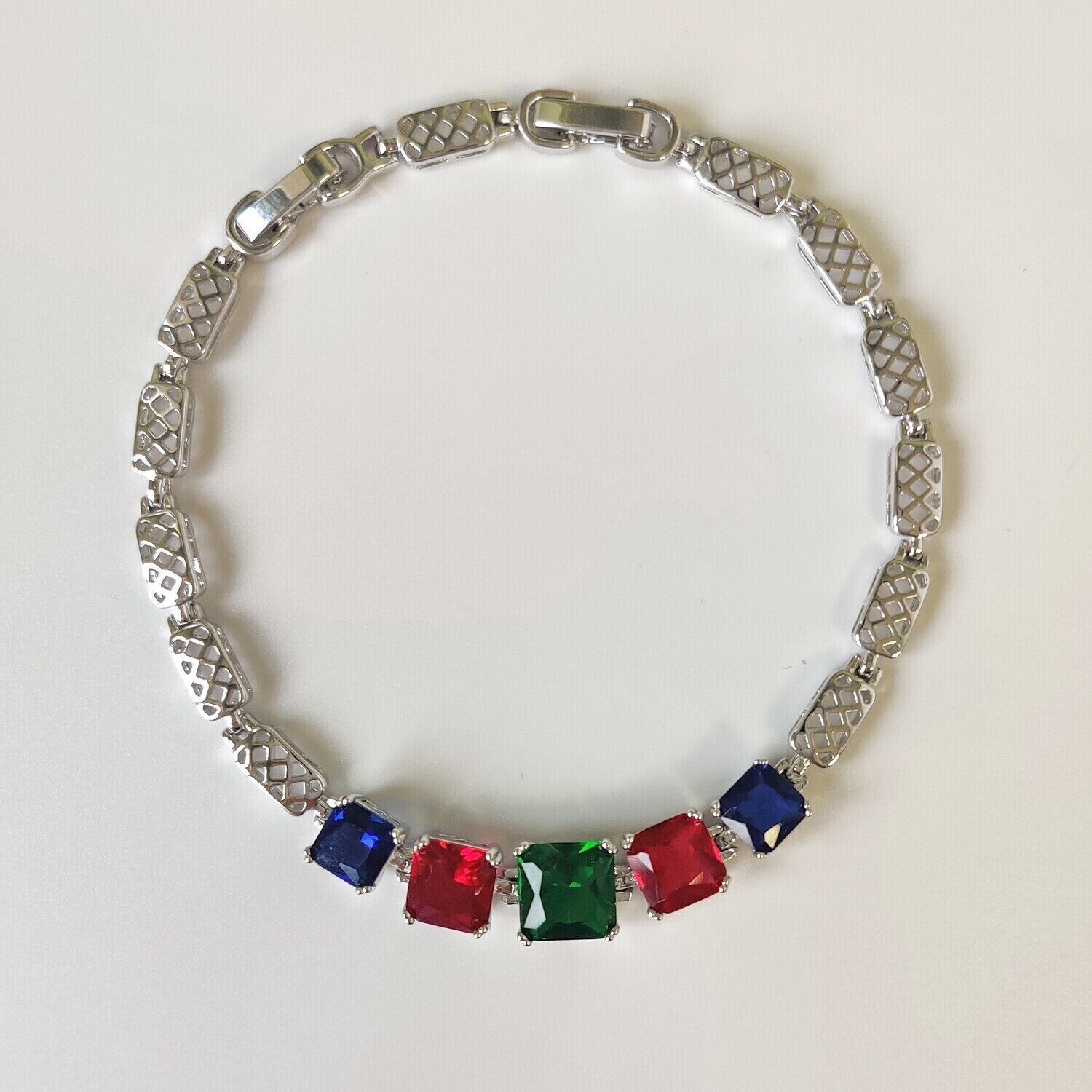 Браслет с цирконами из ювелирного сплава — стильное и яркое украшение, дополняющее любой образ.