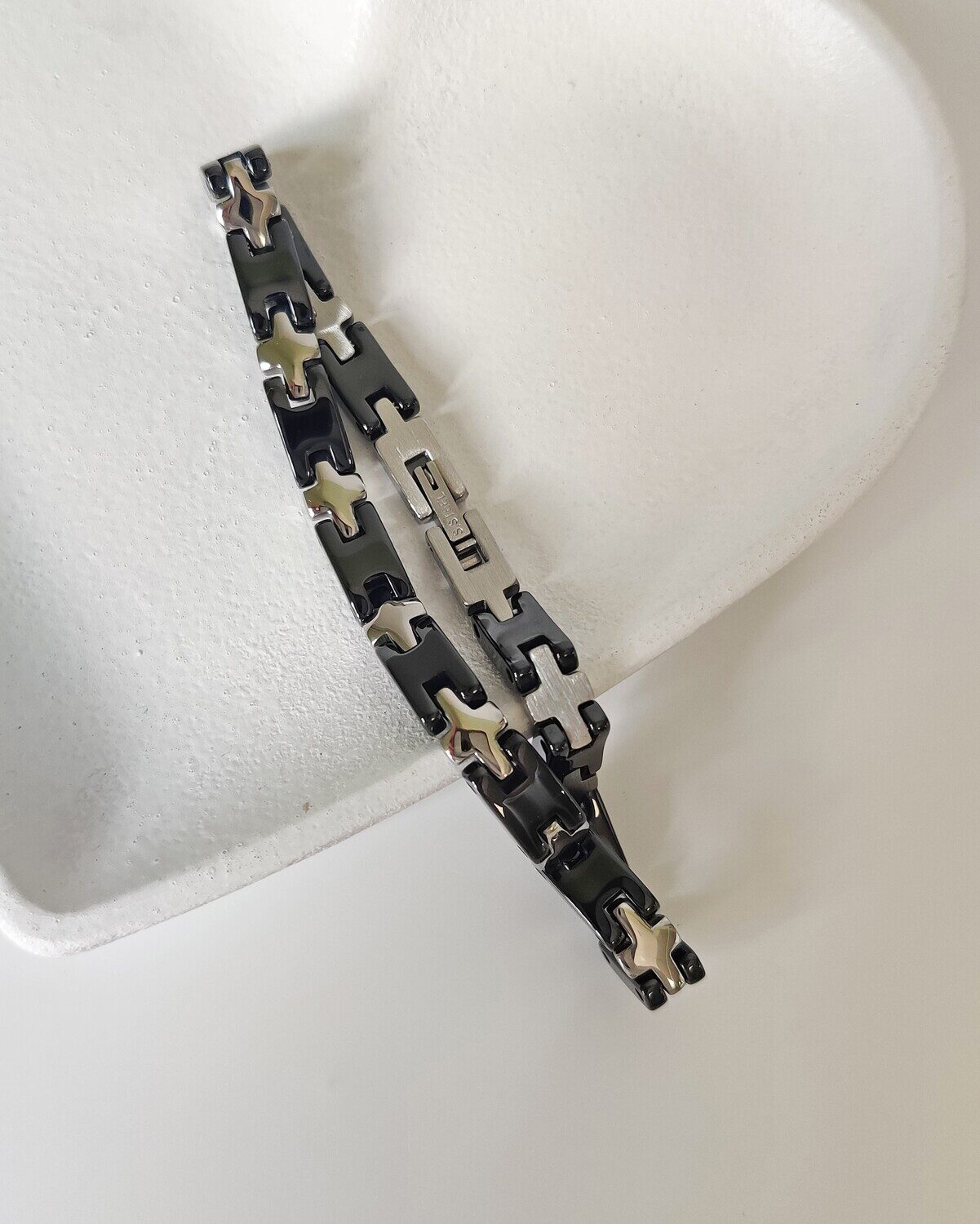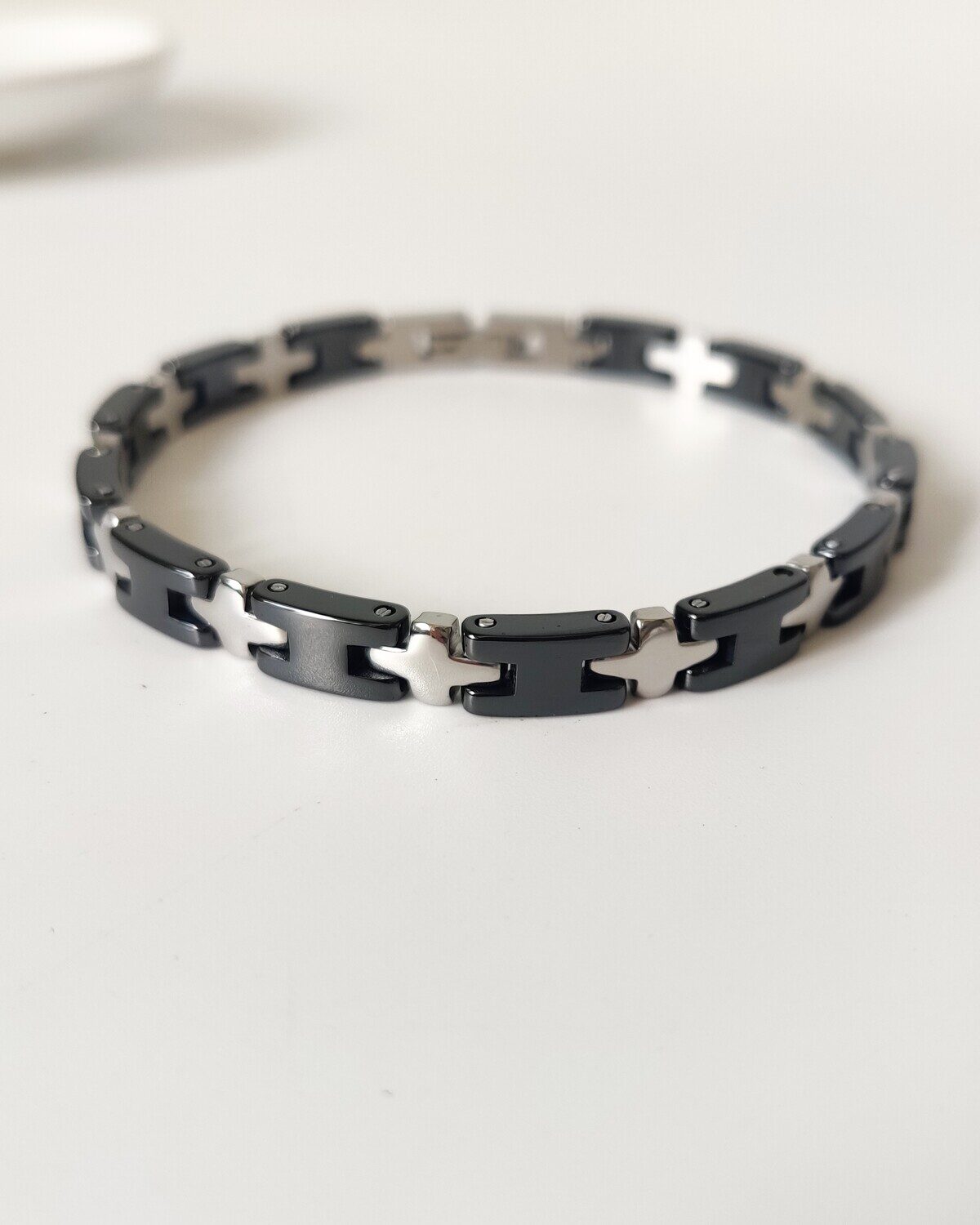 Стильный браслет из стали и керамики — это аксессуар, который сочетает в себе прочность стали и элегантность керамики.