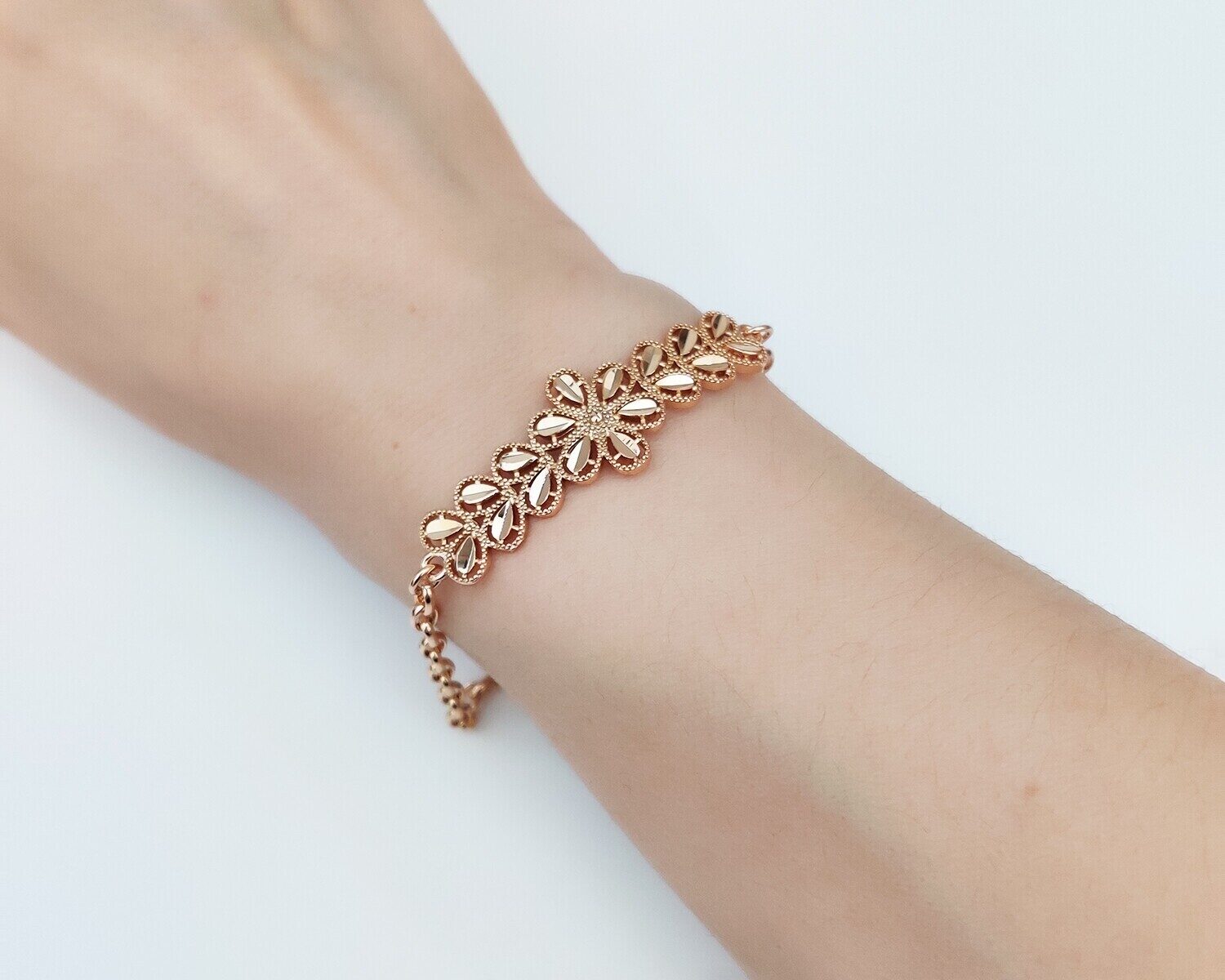 Этот красивый браслет изготовлен из специального гипоаллергенного ювелирного сплава, который затем покрывается золотом.