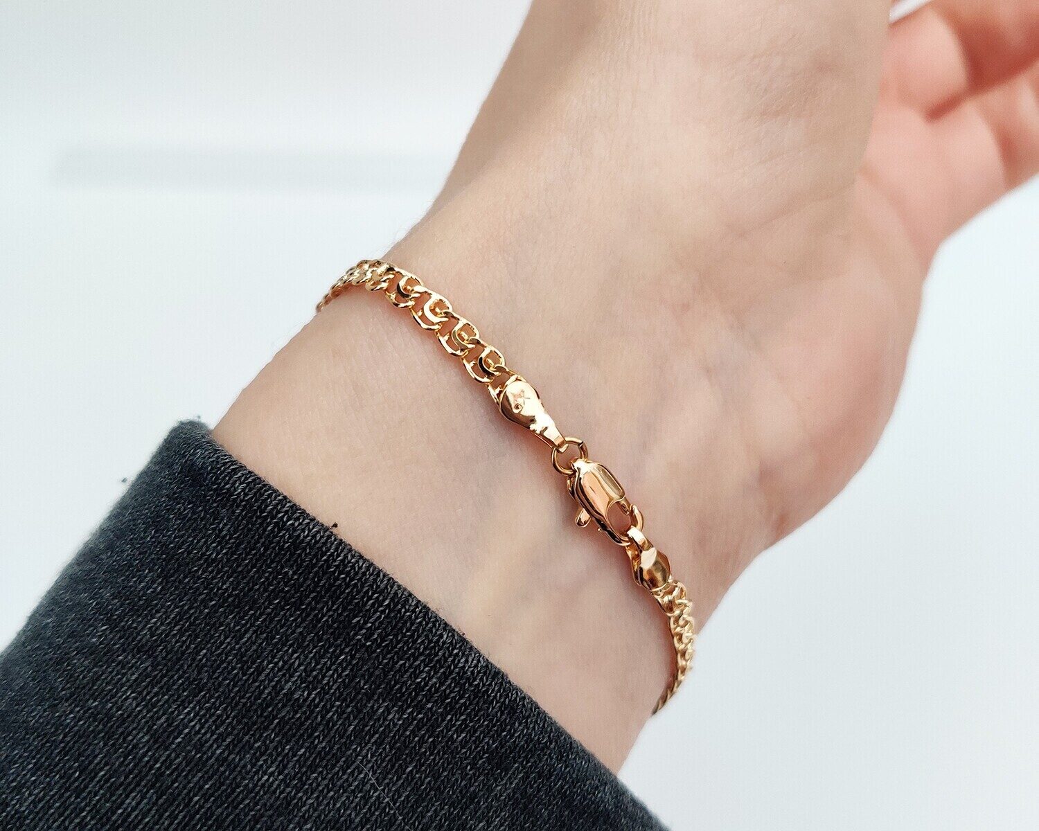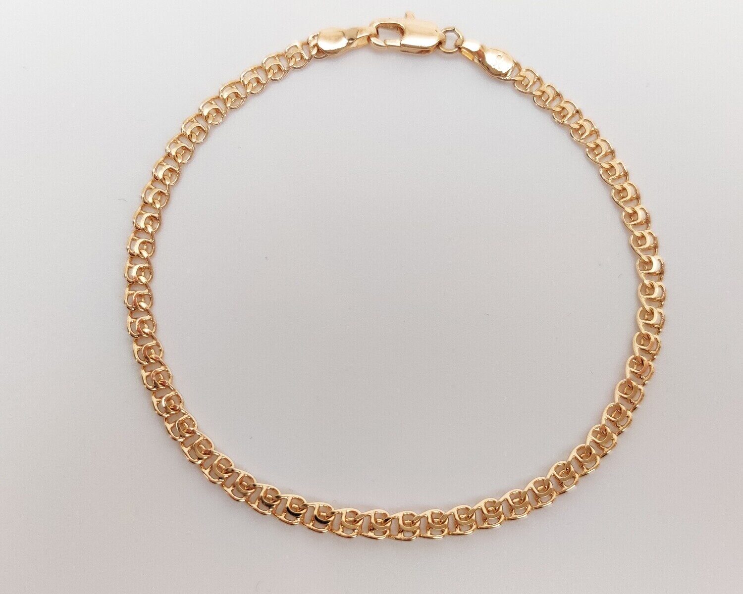 Этот красивый браслет изготовлен из специального гипоаллергенного ювелирного сплава, который затем покрывается золотом.