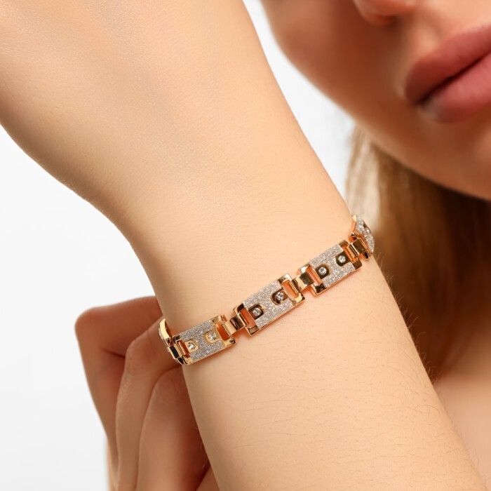 Браслет женский на руку Дубайское золото покрытие позолота, вставка: блестящий глиттер и фианиты, арт.216.289