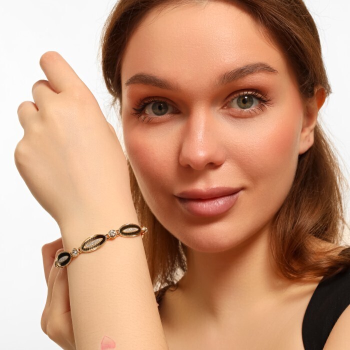 Браслет женский на руку Дубайское золото покрытие позолота, вставка: блестящий глиттер и фианиты, арт.216.293