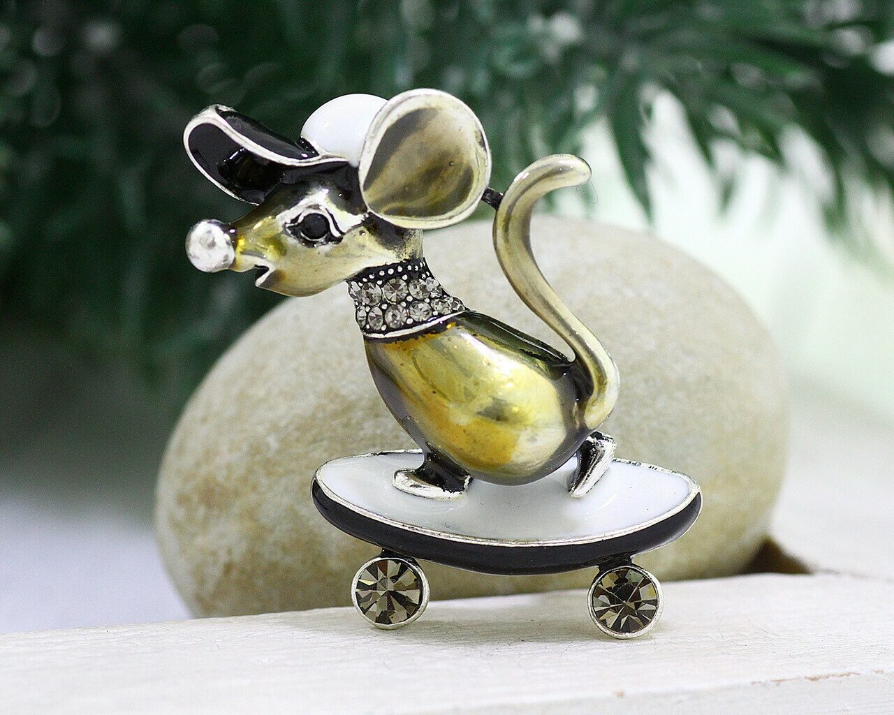 Символ Нового Года Брошь Брошь удачно дополнит ваш образ, придаст ему завершенность и изысканный шарм. Броши дают возможность для фантазии, с помощью этого маленького аксессуара вы легко и просто сможете превращать повседневное платье в вечернее, а любой свой простой наряд – в модный и стильный. Броши изготовлены из ювелирного сплава,покрытого родием,горячей эмалью, покрытием под золото.