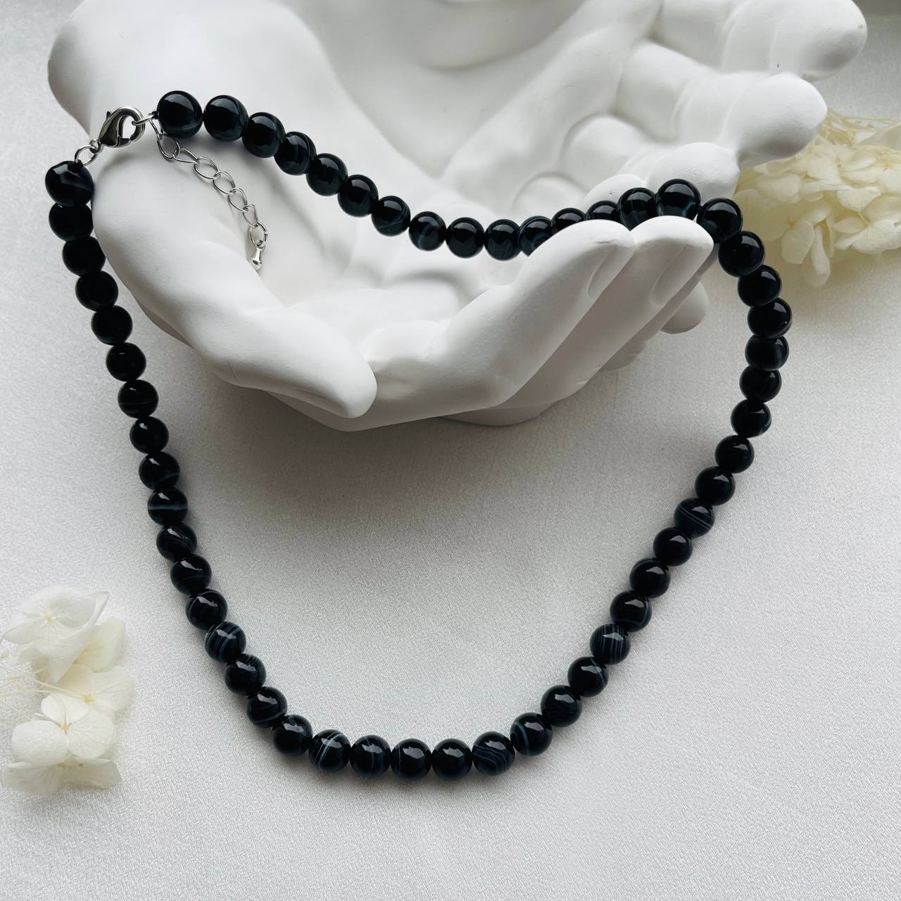 Цвет камня: Чёрный Месторождение:..показать Бразилия Камень: Агат Диаметр: 10 мм Вязка: с узелком Поверхность: Гладкий Производитель: Радуга Самоцветов (Россия) Тип замка: Карабин с цепочкой Бразилия