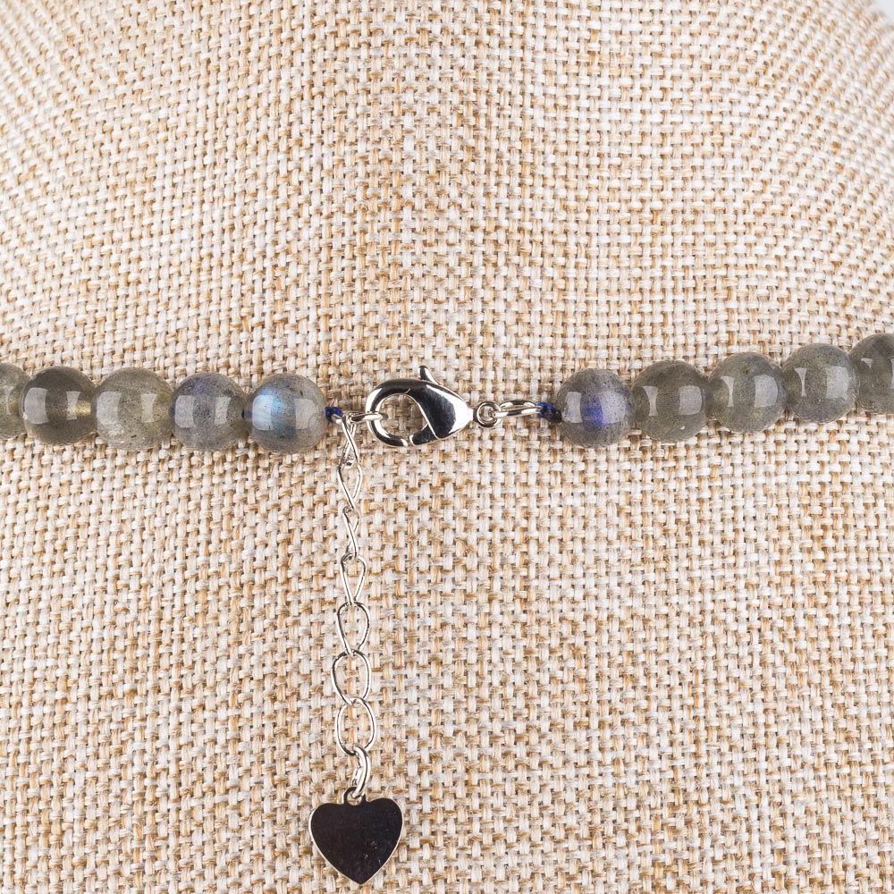 Цвет камня: Синий Камень: Лабрадо..показатьр Диаметр: 7-7,5 мм Поверхность: Гладкий Производитель: Радуга Самоцветов (Россия) Тип замка: Карабин с цепочкойр