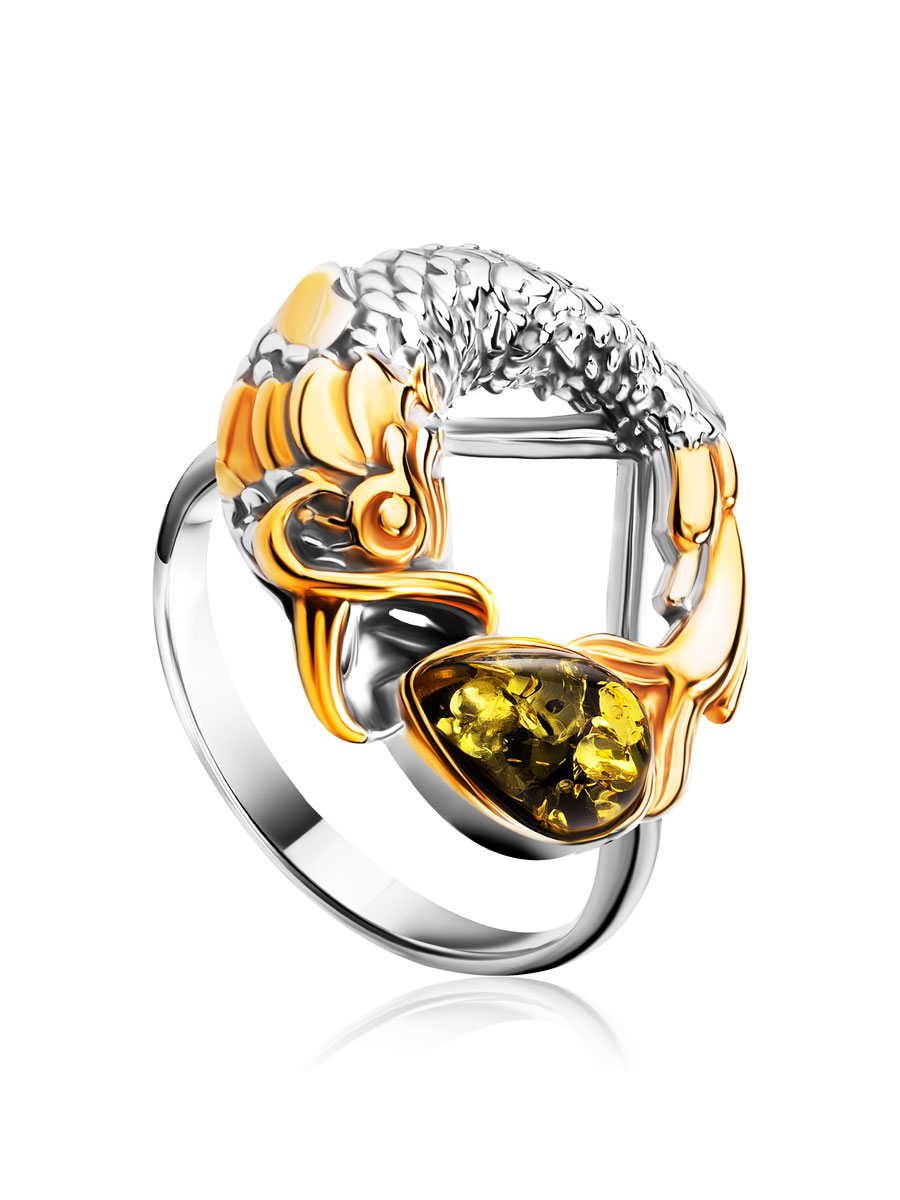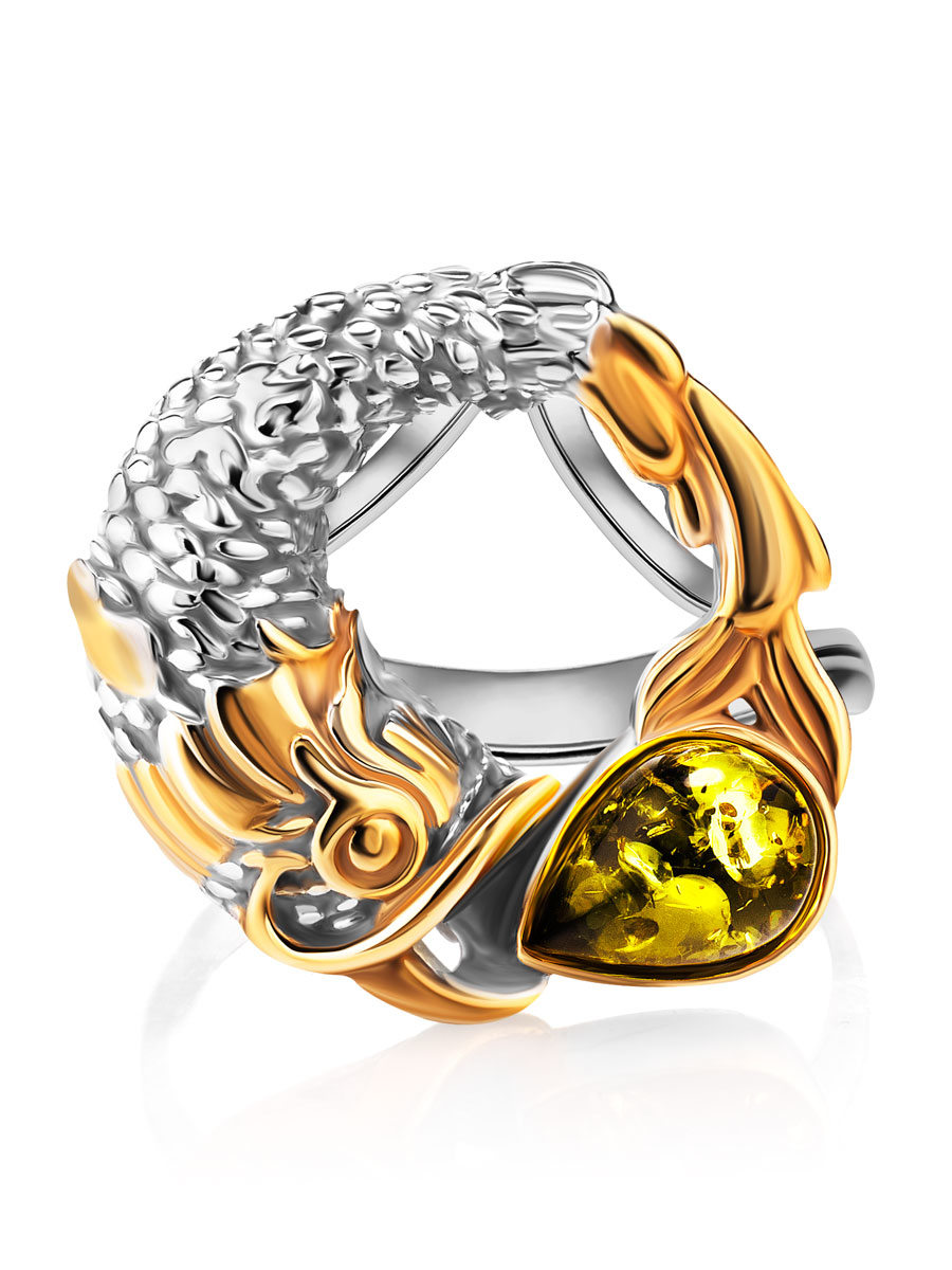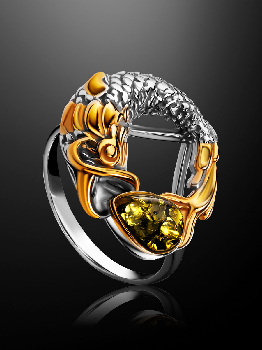Чудесное оригинальное кольцо с янтарём «Рыбка Кои»