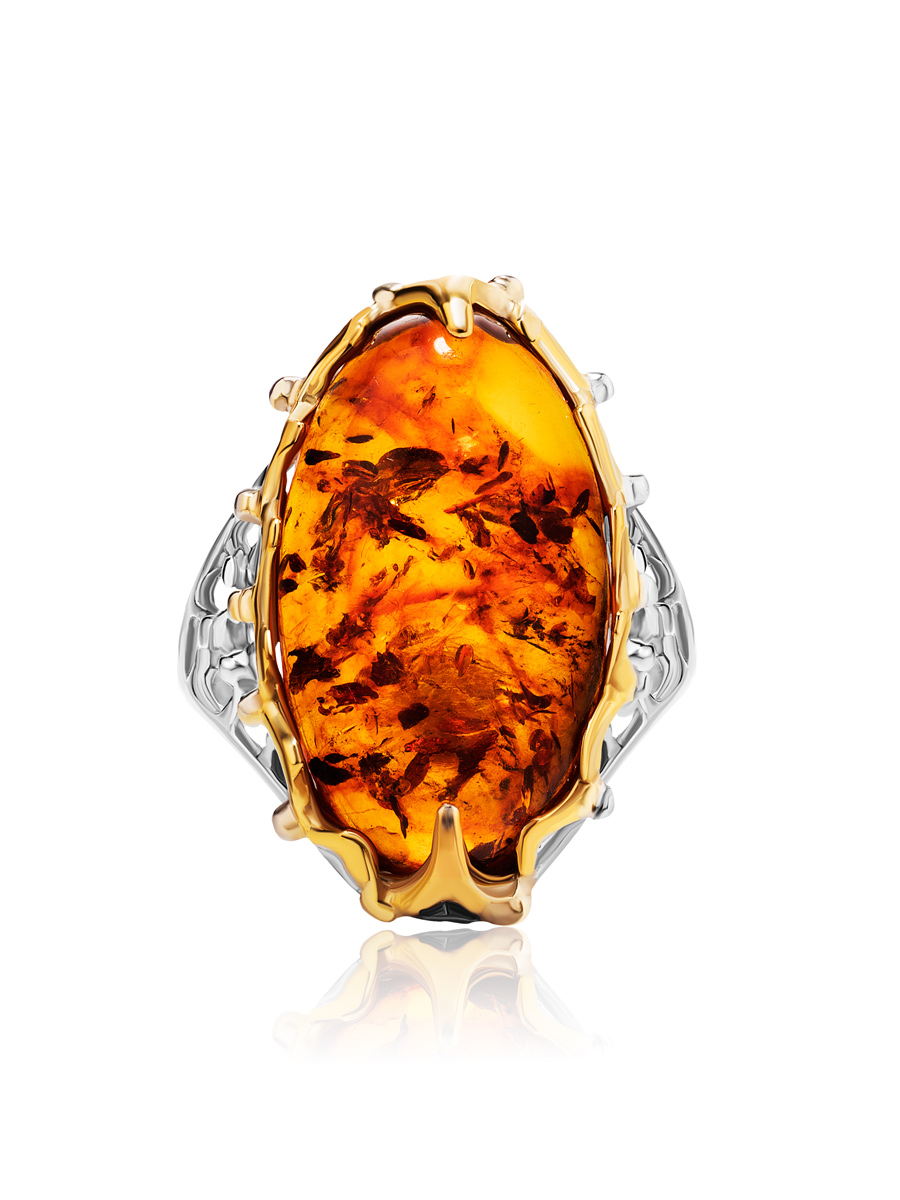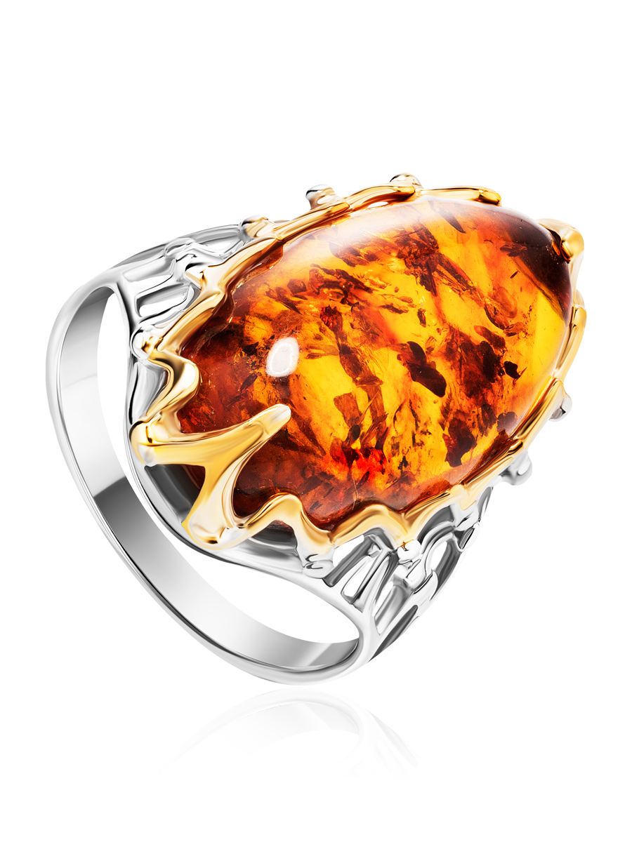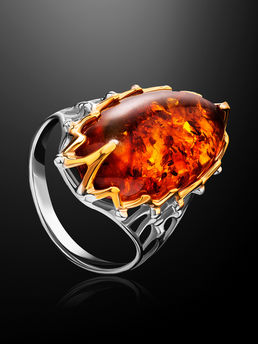 Эффектное кольцо «Сеговия» из натурального янтаря коньячного цвета
