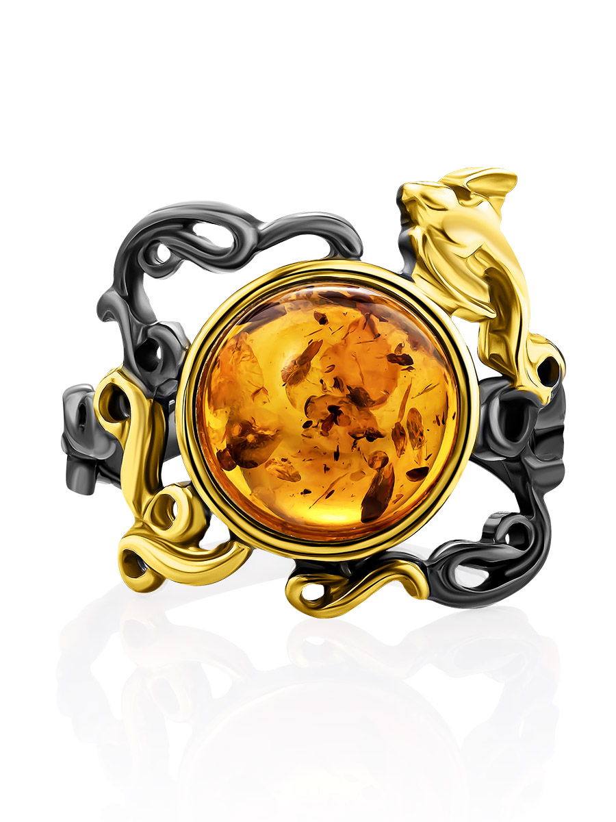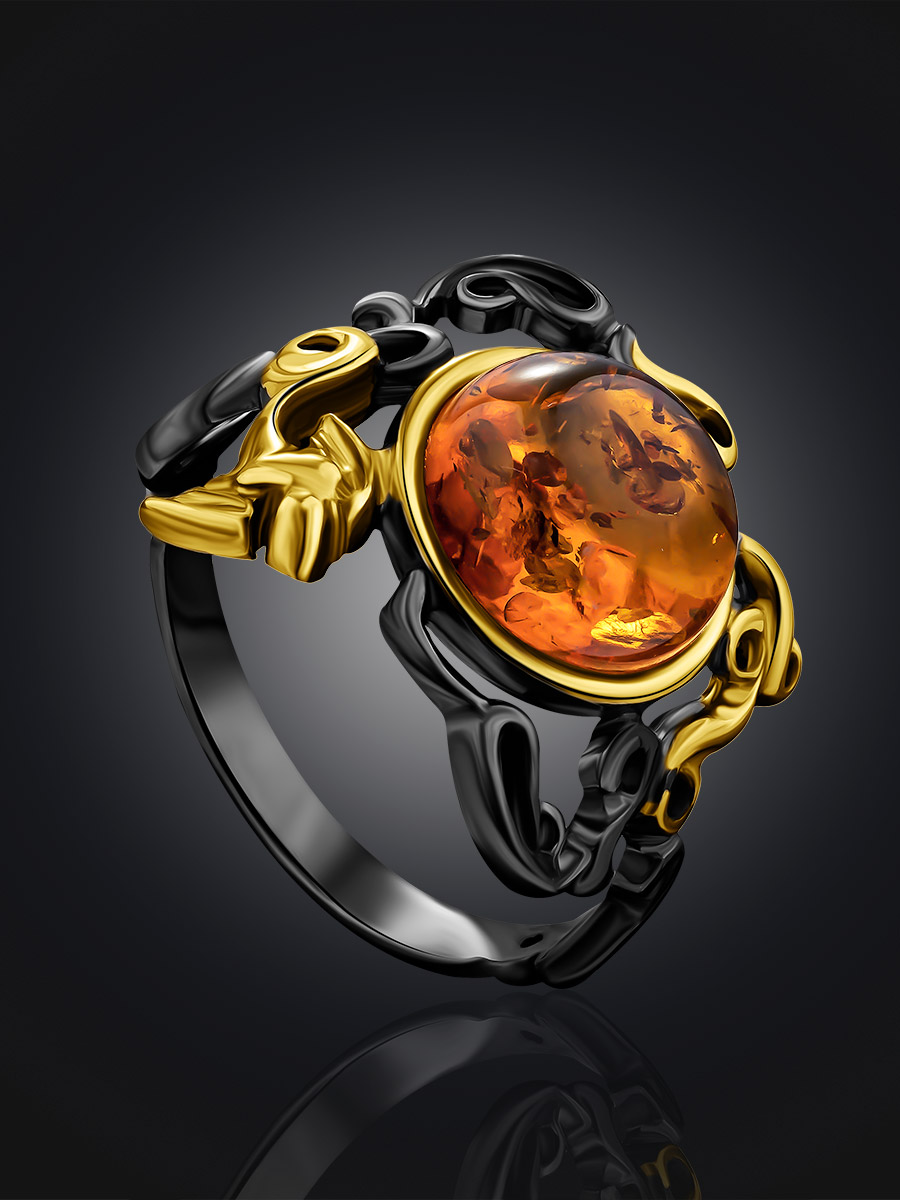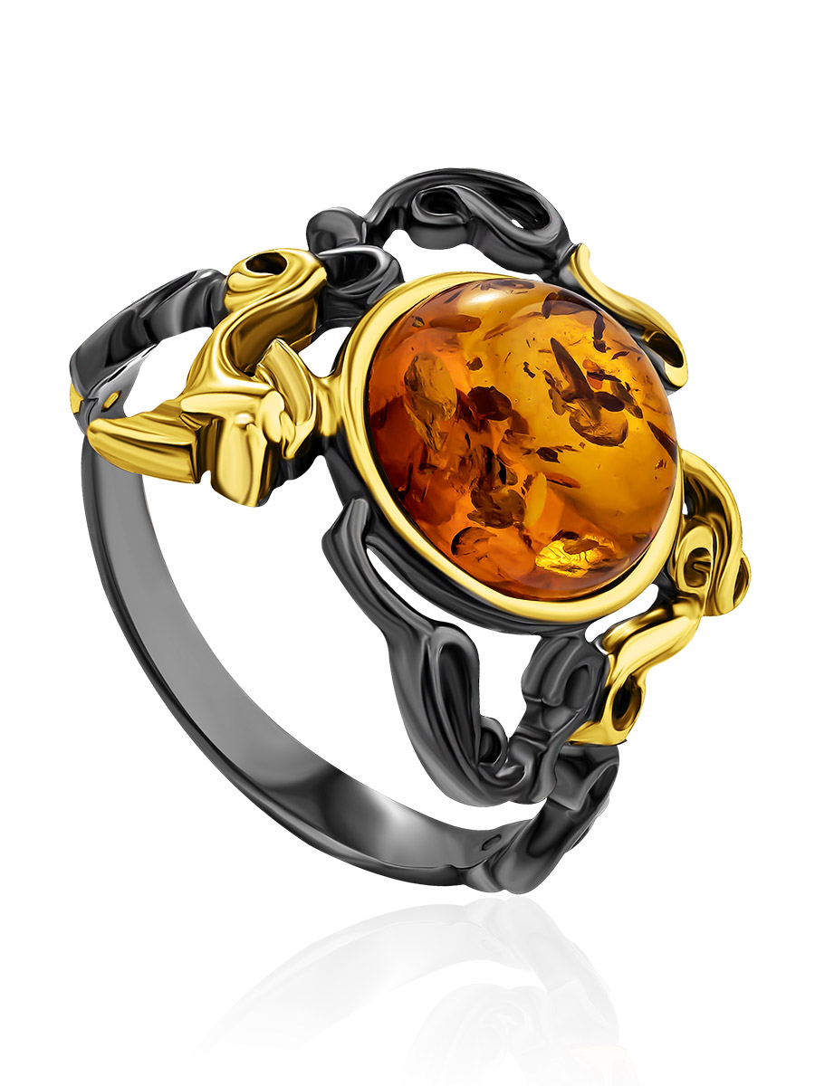 Эффектное красивое кольцо из коньячного янтаря «Лиора»