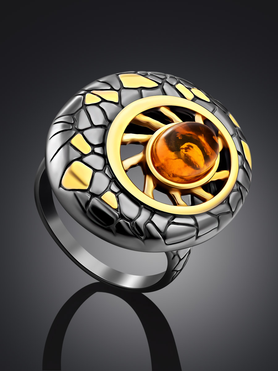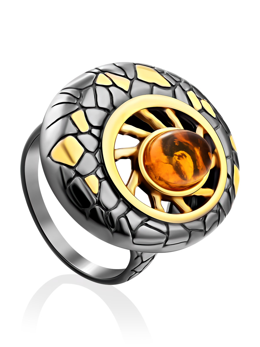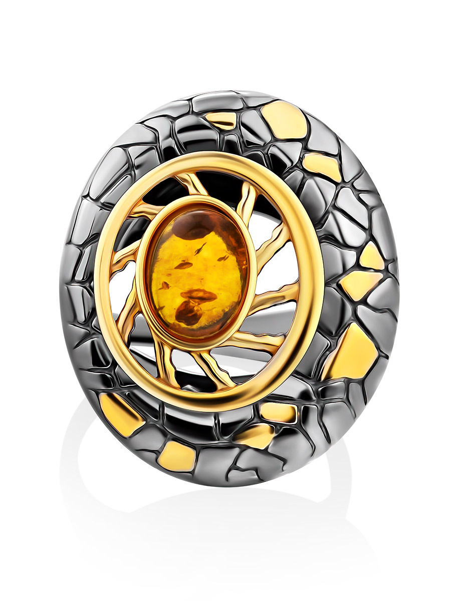 Эффектное крупное кольцо «Донателла» с натуральным янтарём
