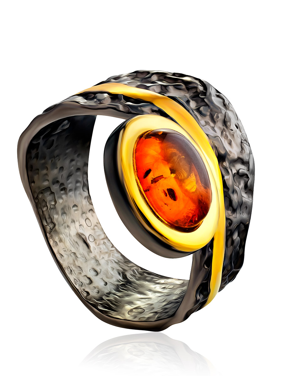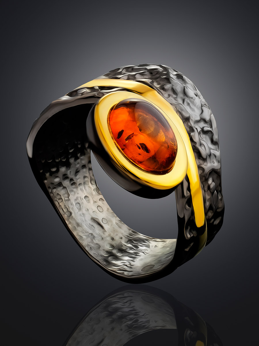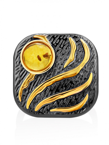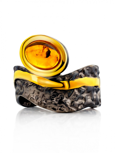 Эффектное необычное кольцо «Бубинга» с янтарём