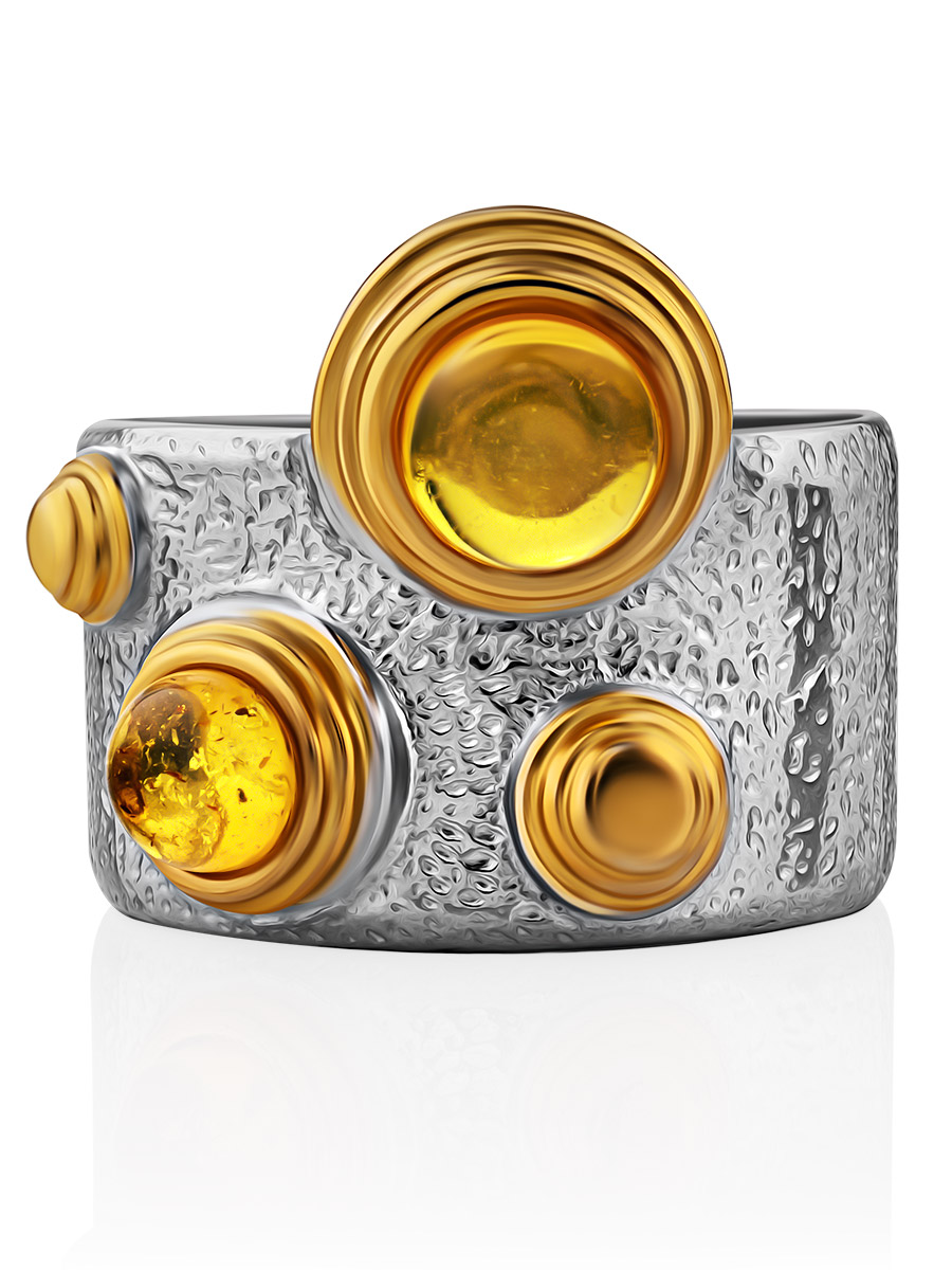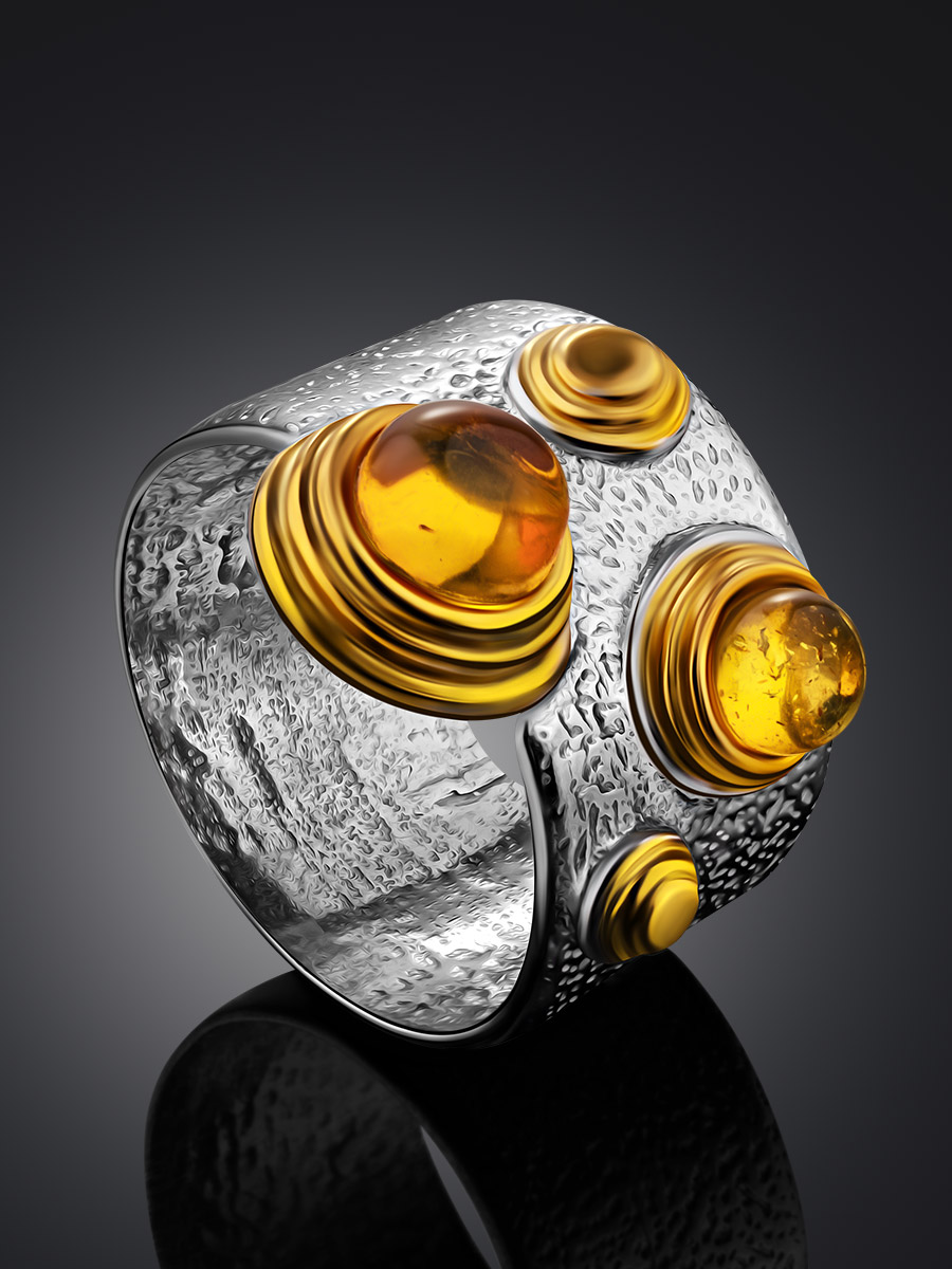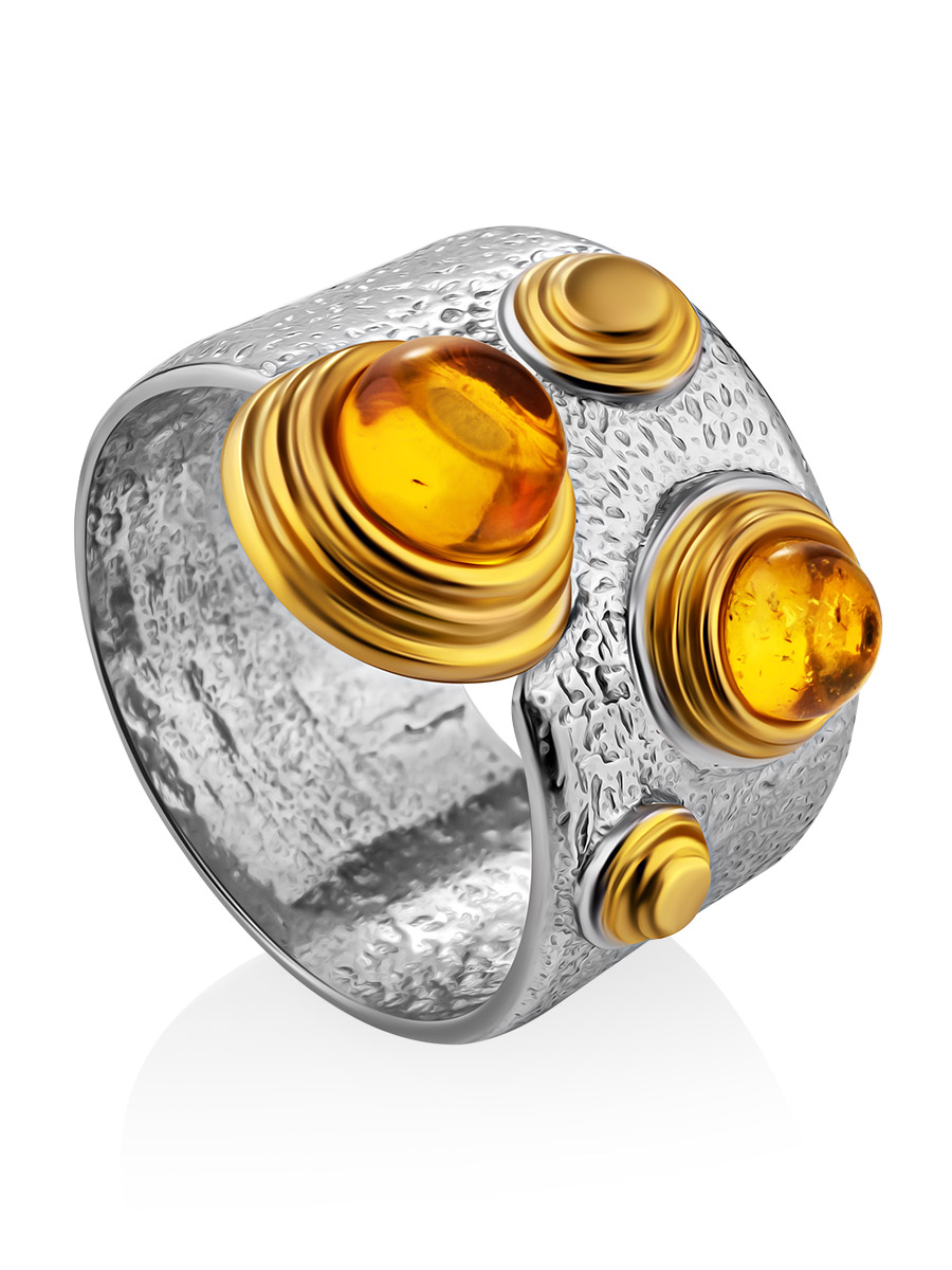 Эффектное широкое кольцо, украшенное янтарными вставками «Элевсина»