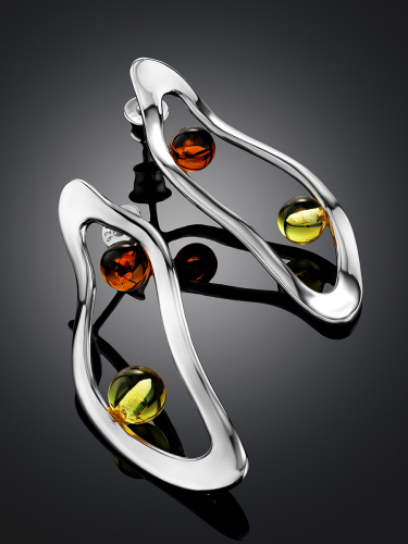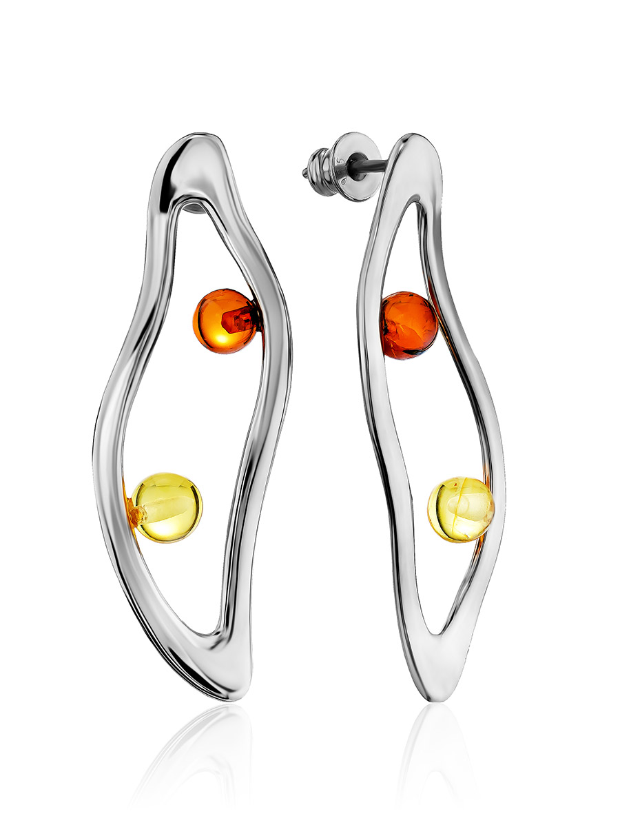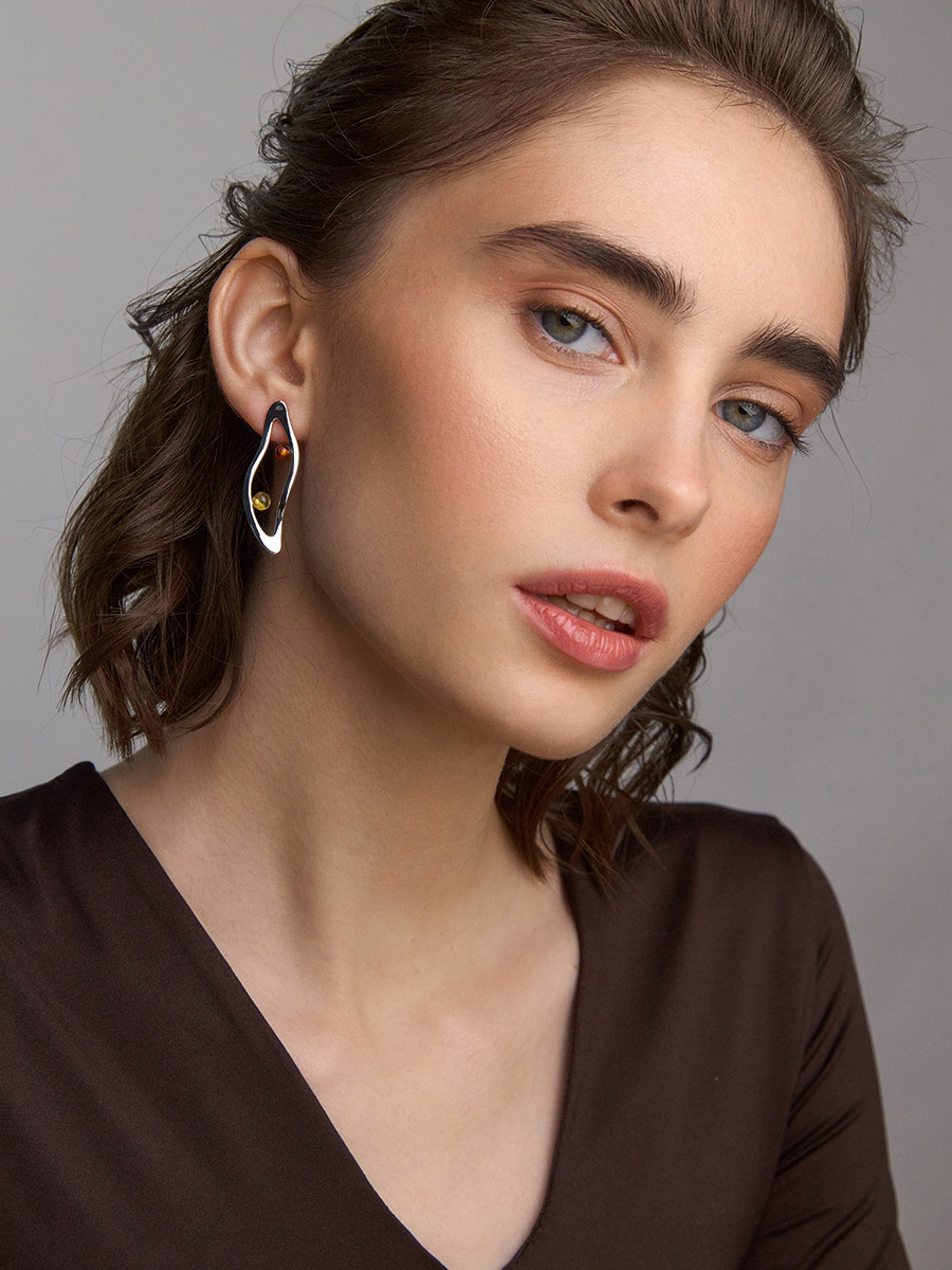 Эффектные серьги с натуральным янтарём Palazzo от ifamore™