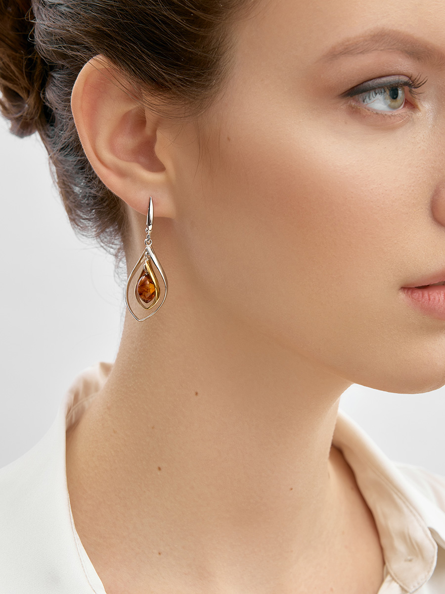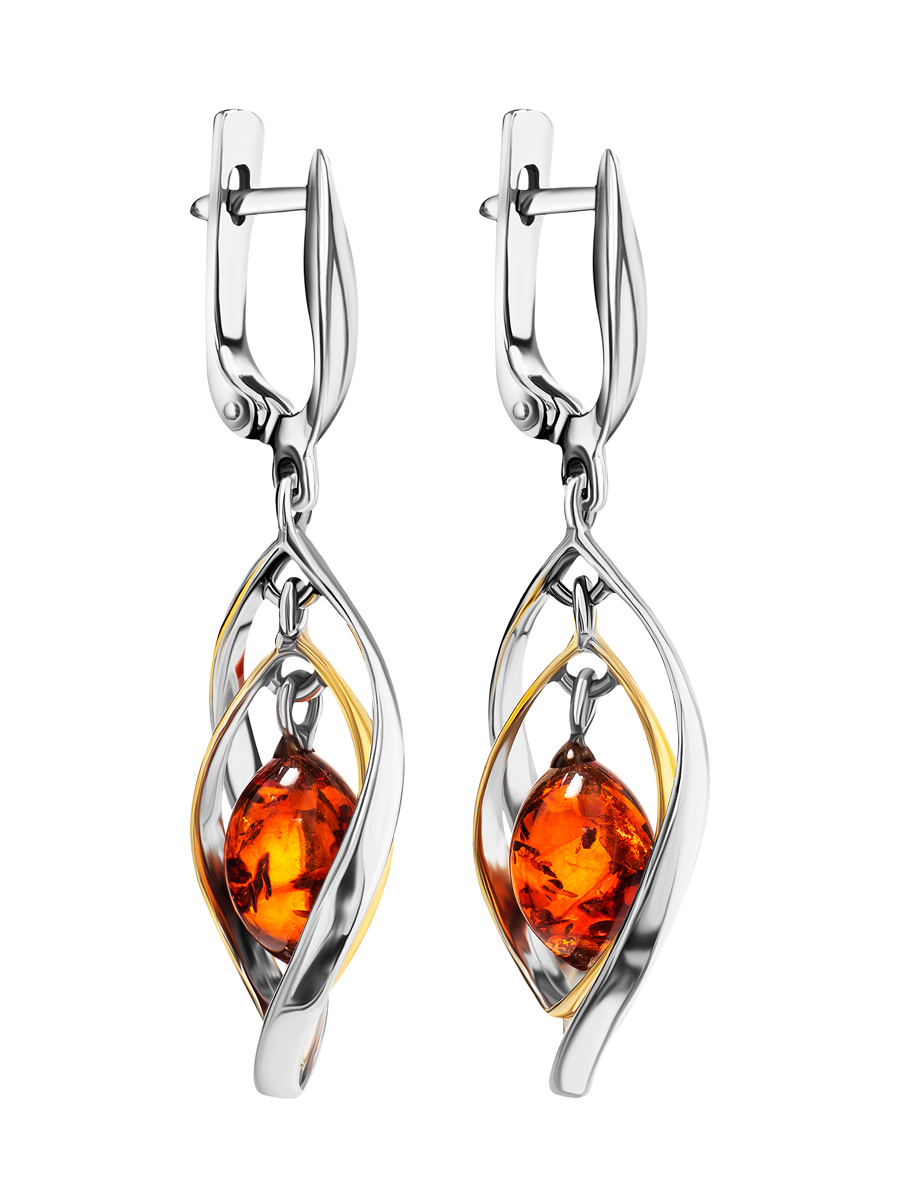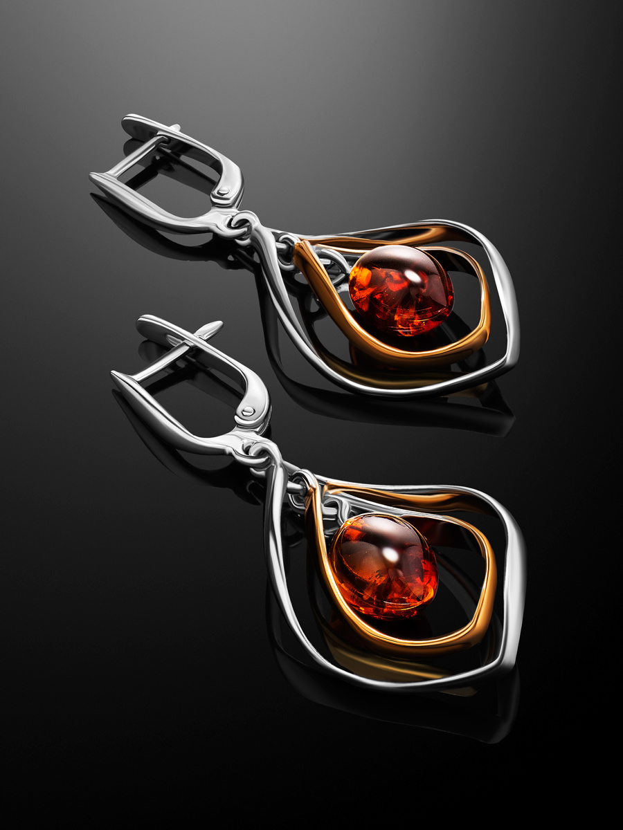 Эффектные серьги в ажурном дизайне с янтарём «Рапсодия»