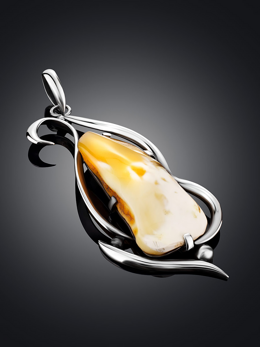 Эффектный объёмный кулон из натурального текстурного янтаря