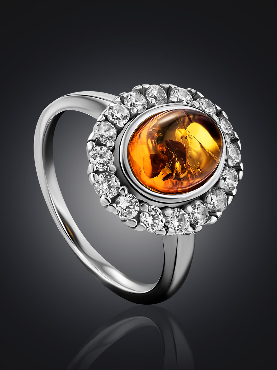 Элегантное кольцо с янтарем и фианитами «Ренессанс»