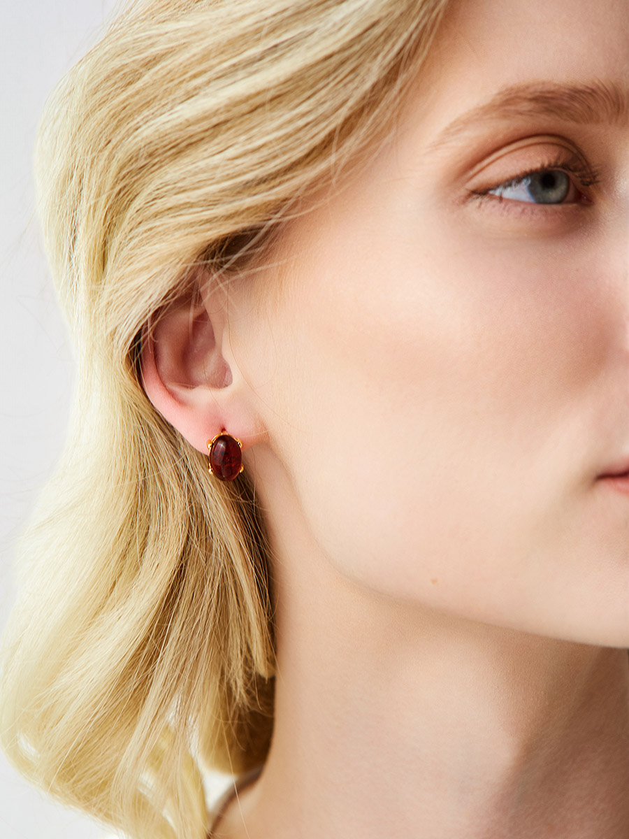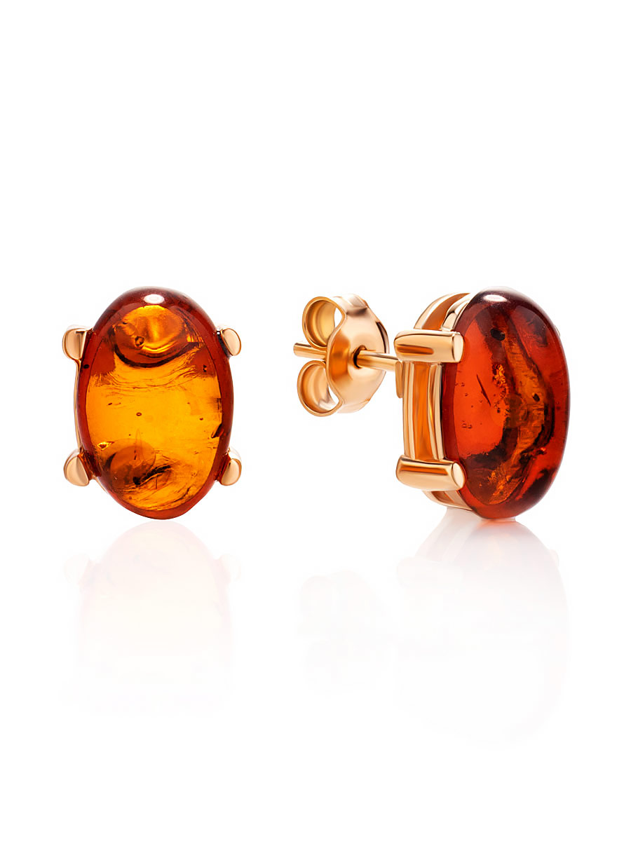 Элегантные серьги-гвоздики с коньячным янтарём «Ностальгия»