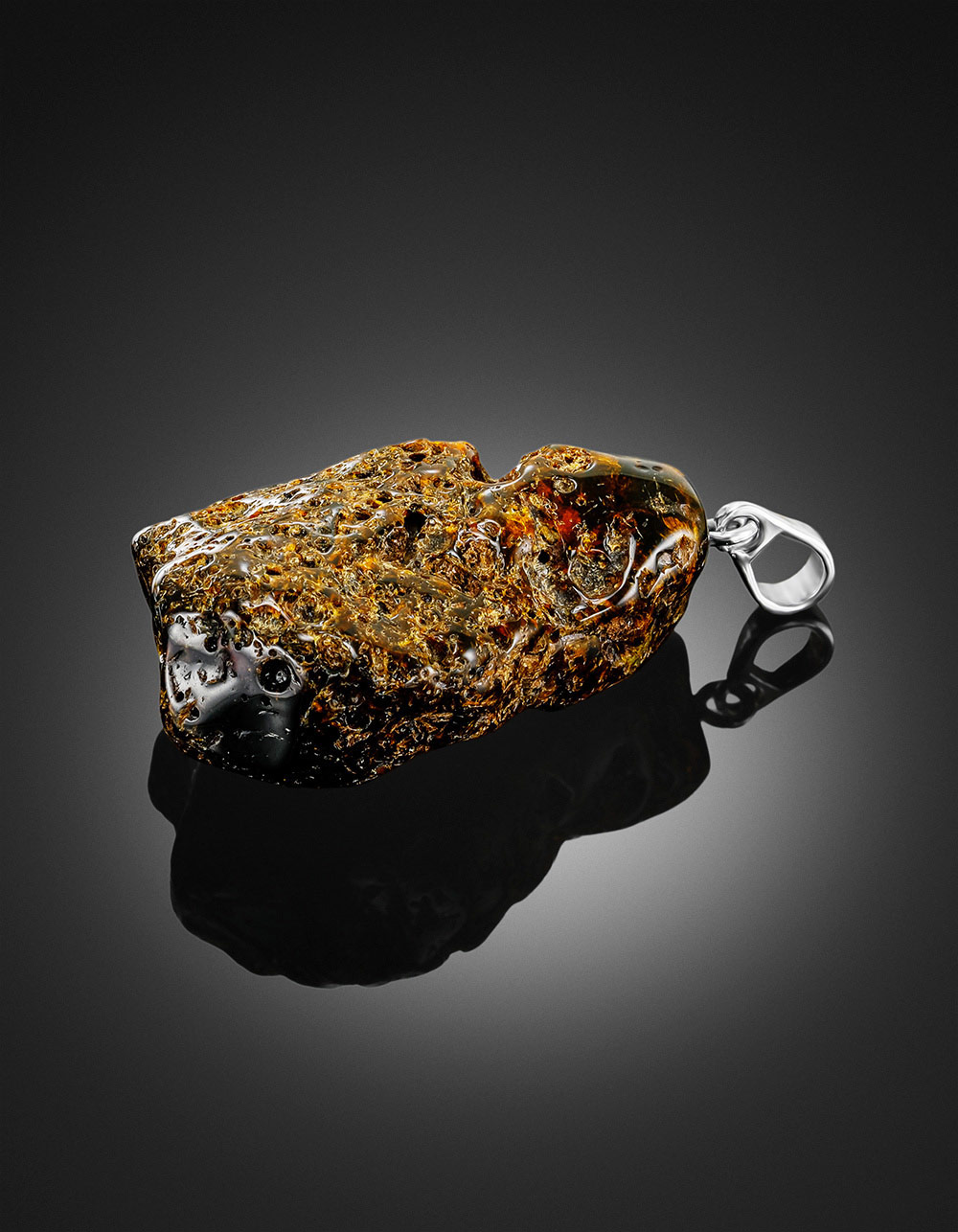 Фигурный объемный кулон из текстурного необработанного янтаря
