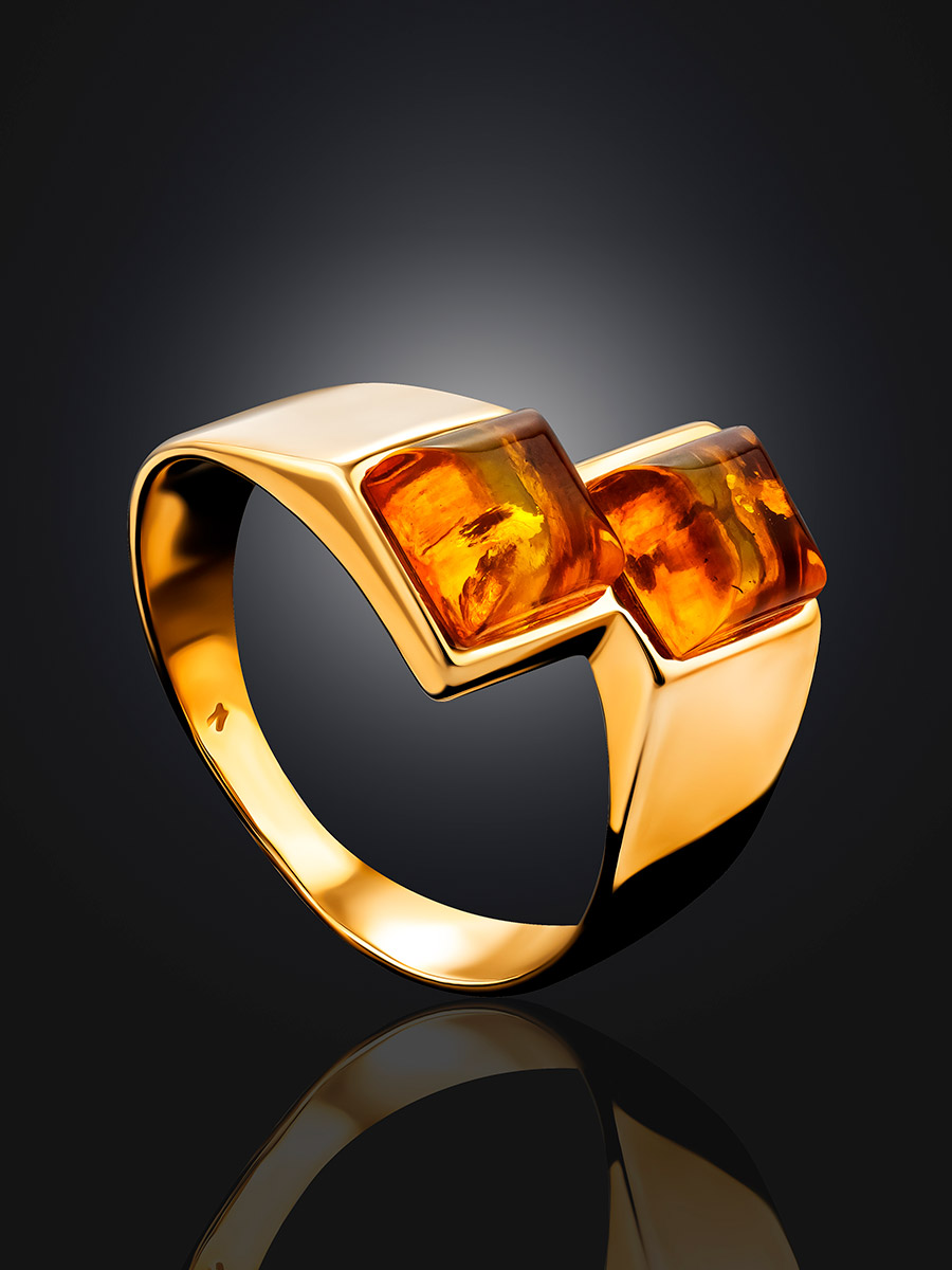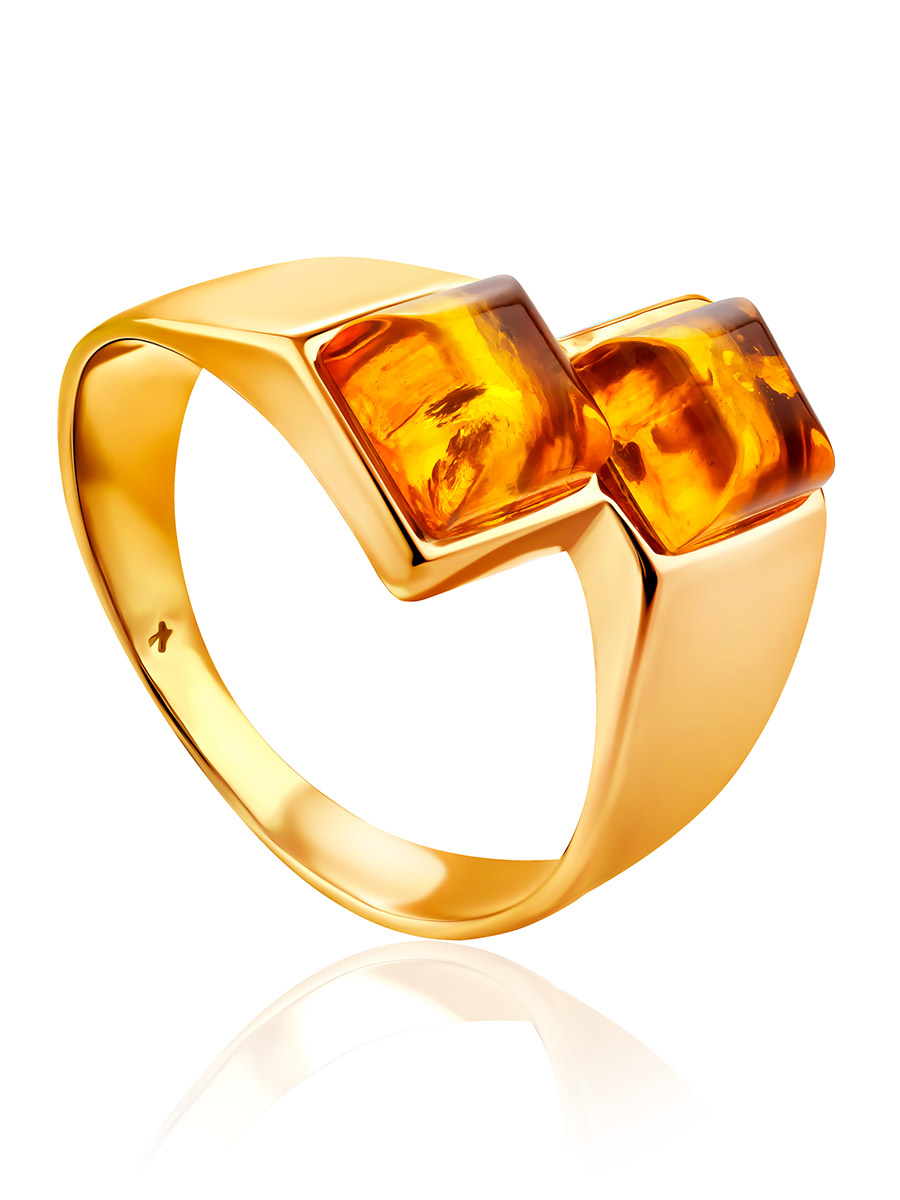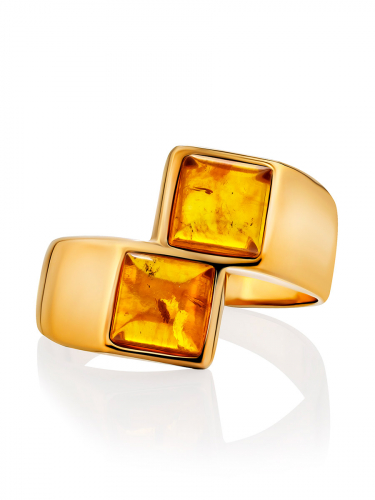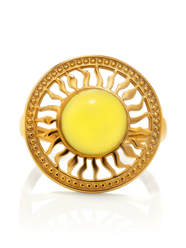 В этом кольце воплощена сама гармония. Красота тёплого солнечного янтаря идеально подчёркивается сиянием позолоты и простотой форм. Стильное и лаконичное украшение подчеркнёт ваш хороший вкус и добавит ярких ноток в ваш день._x000D_