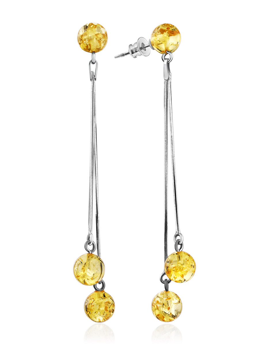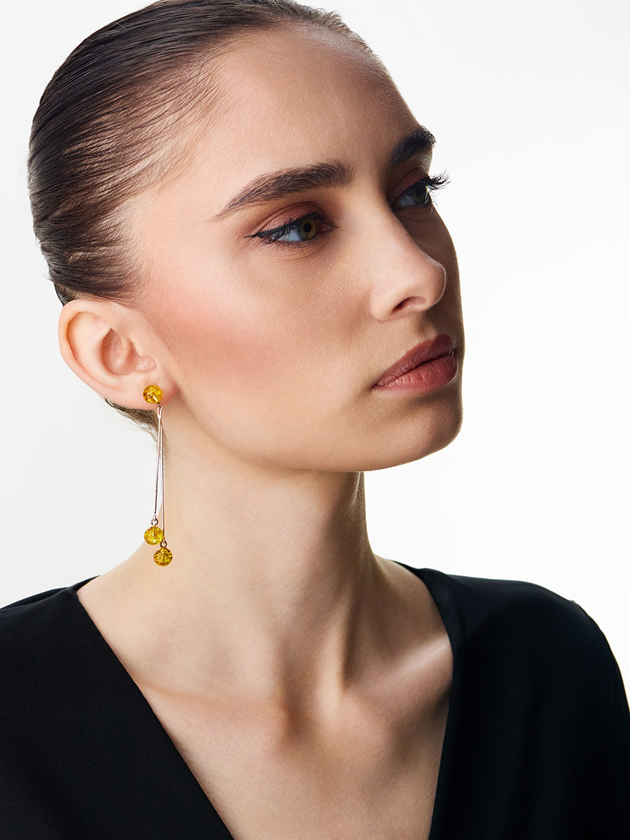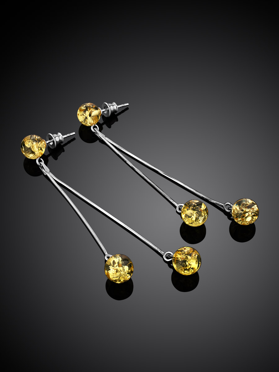 Искрящиеся серьги-гвоздики из янтаря лимонного цвета «Рябина»