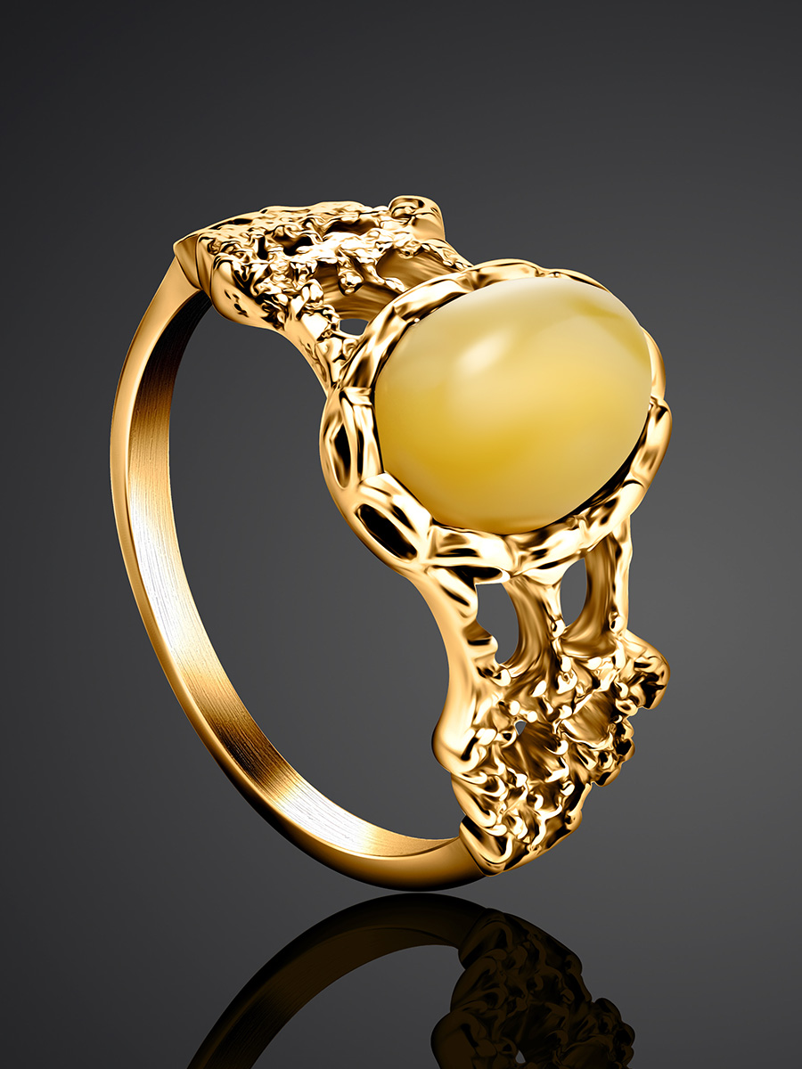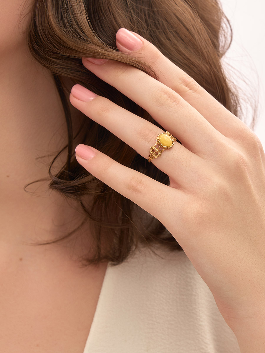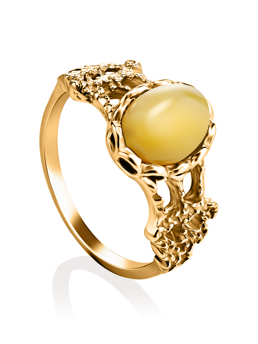 Изящное ажурное кольцо с медовым янтарём «Флоренция»
