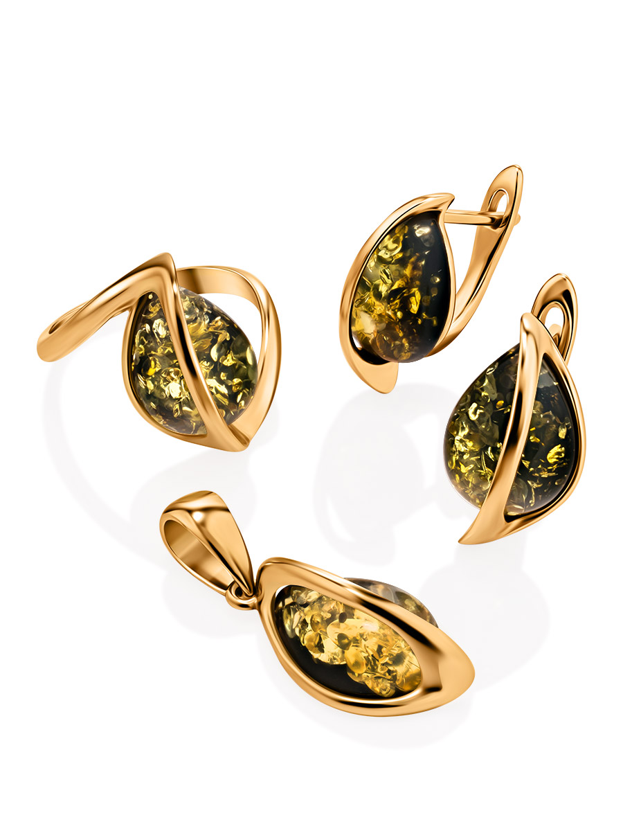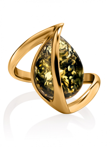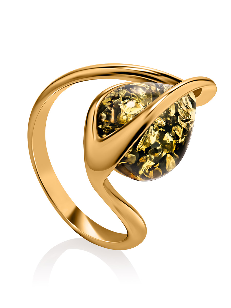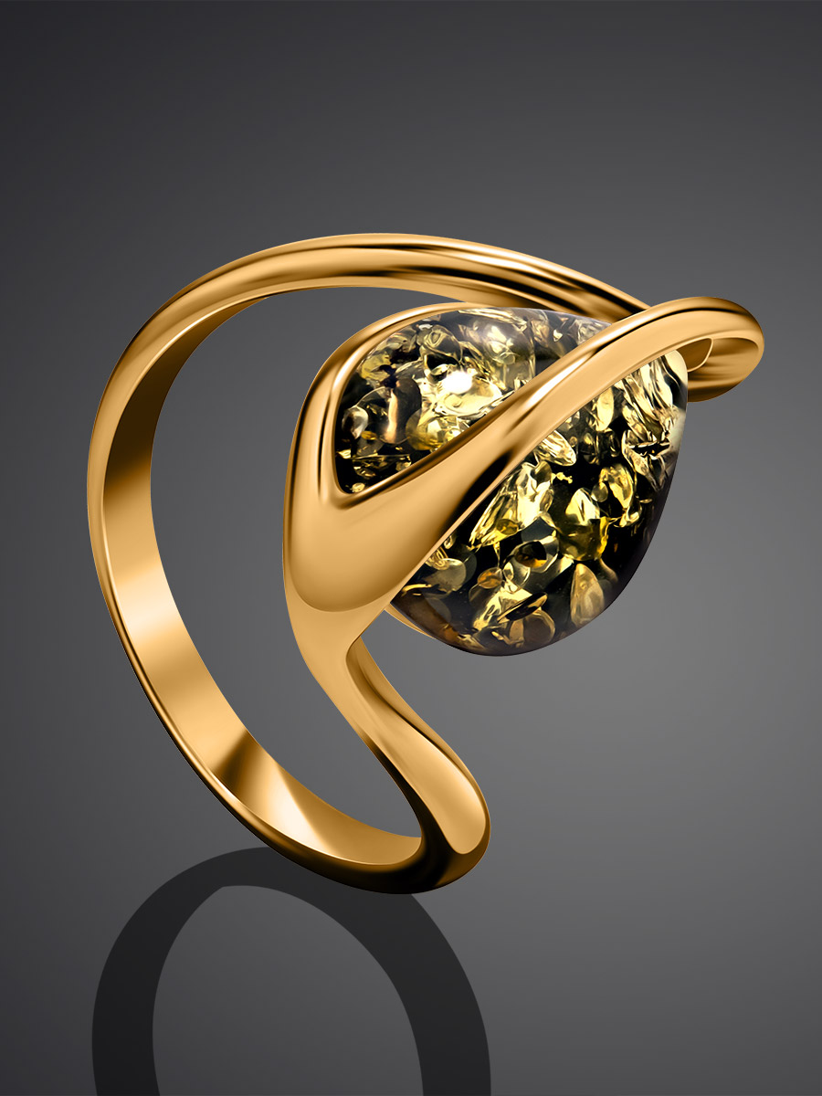Изящное кольцо из натурального зелёного янтаря «Голконда»