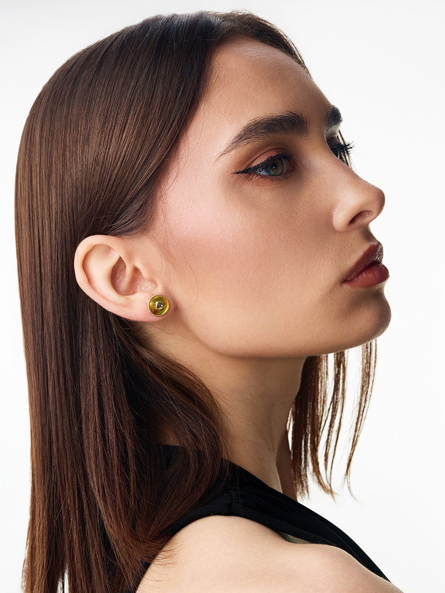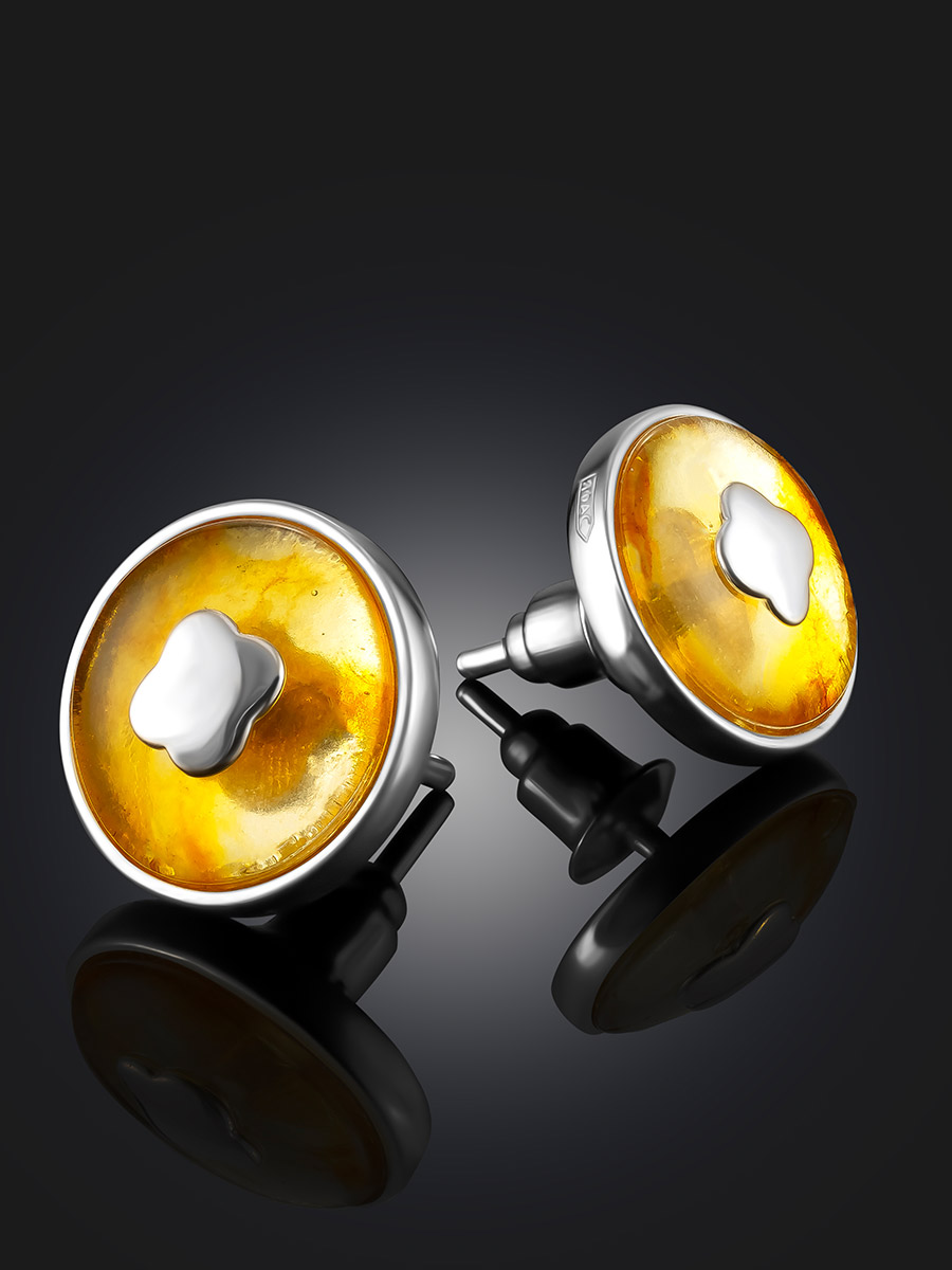 Изящные серьги-гвоздики с лимонным янтарём «Монако»