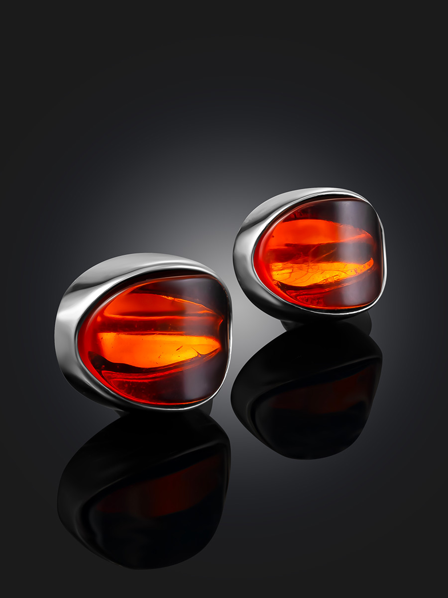 Изящные серьги-пусеты London с натуральным коньячным янтарём