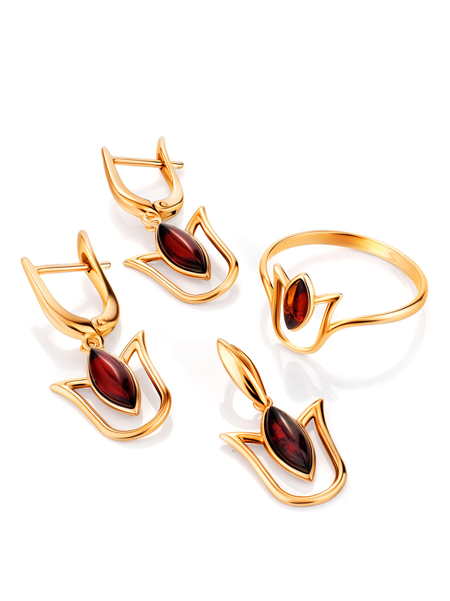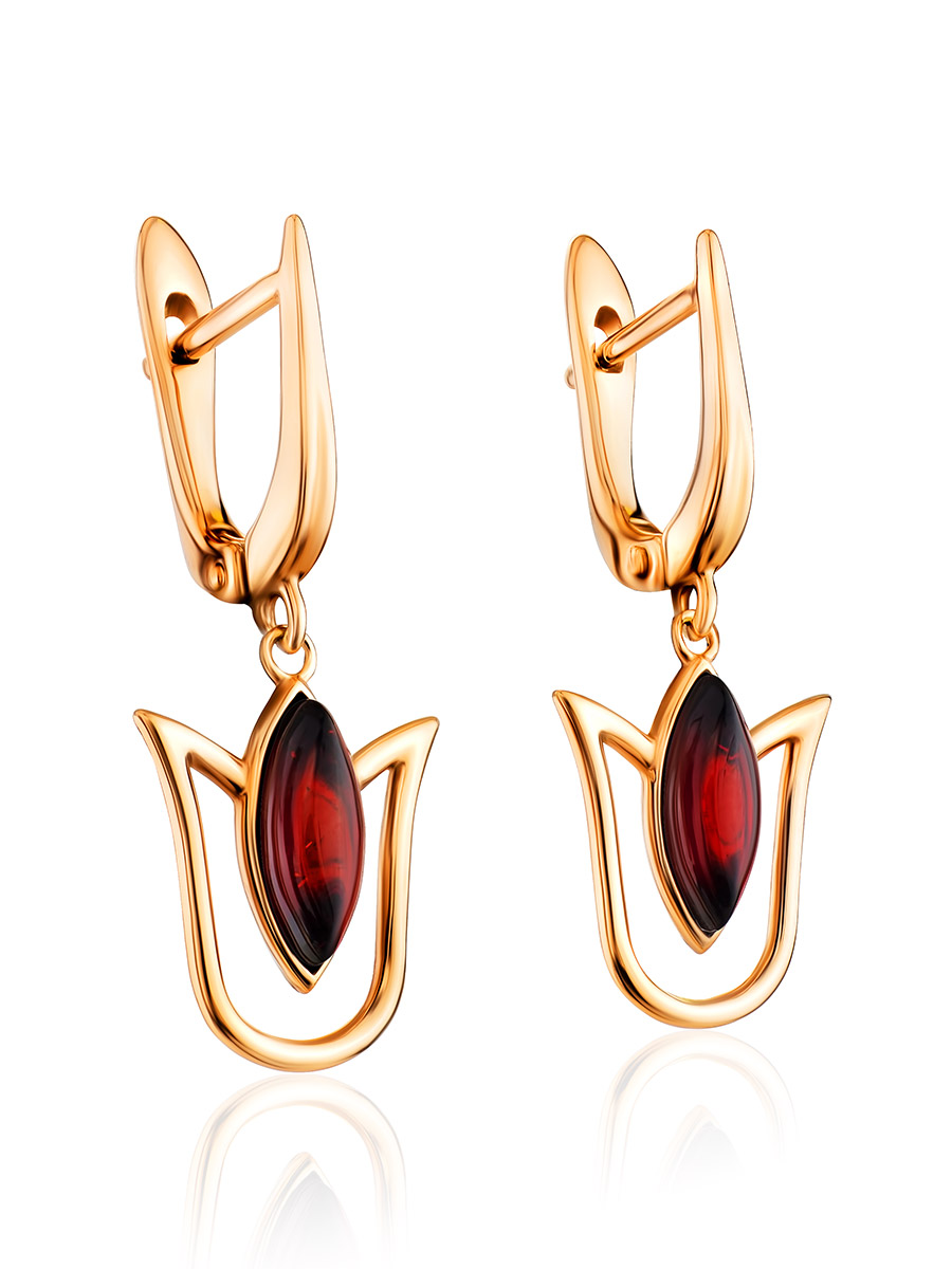 Изящные серьги с натуральным янтарём «Тюльпан»