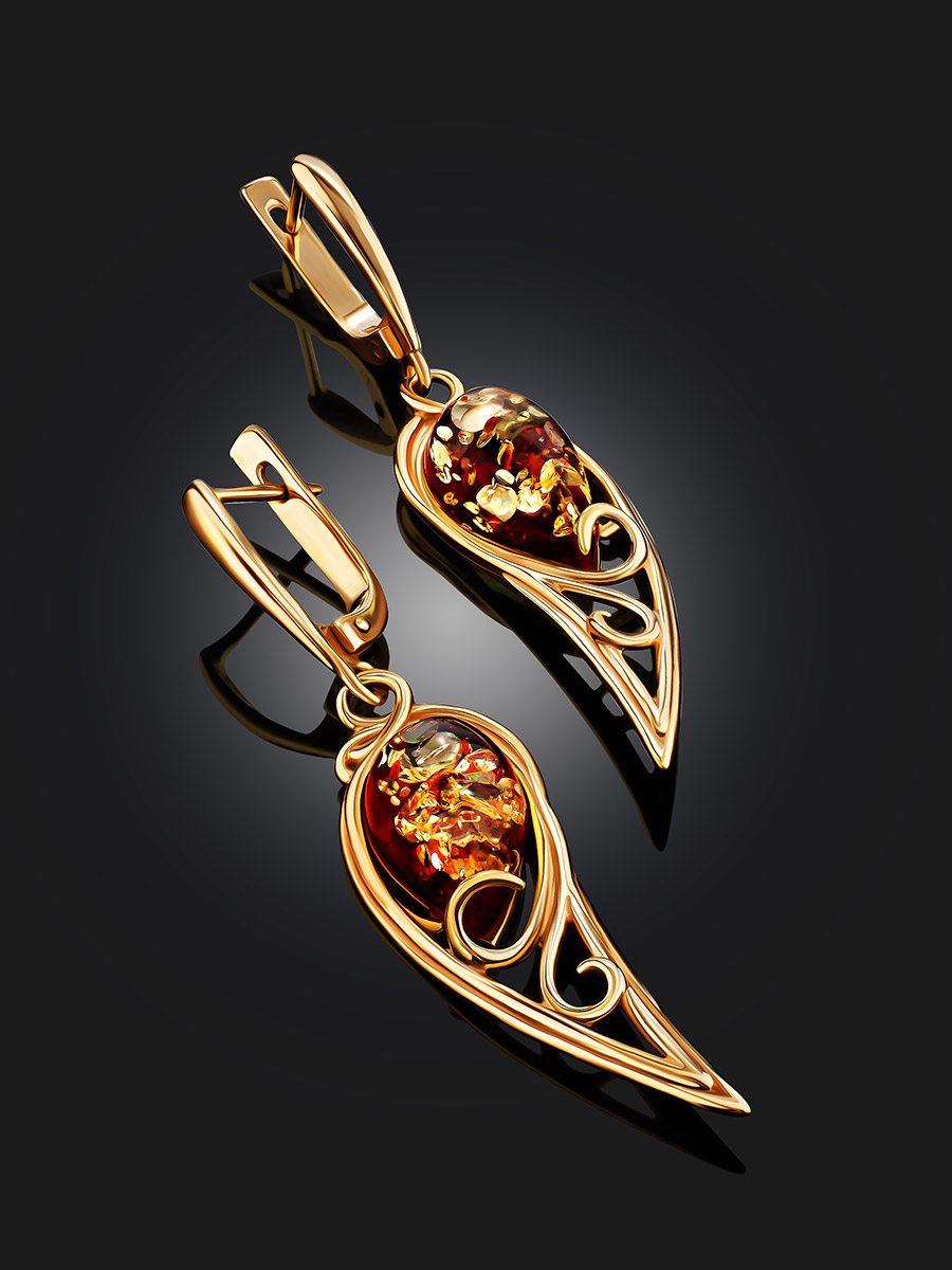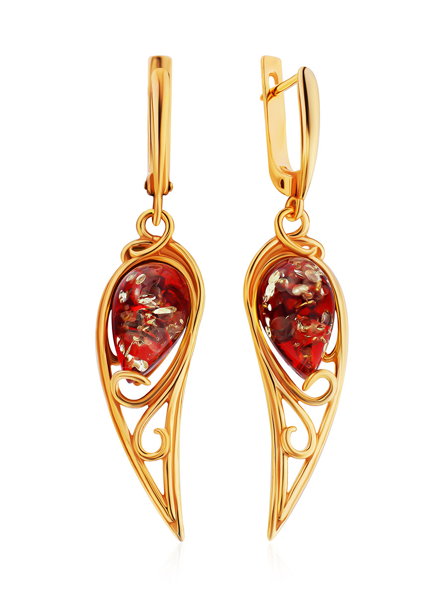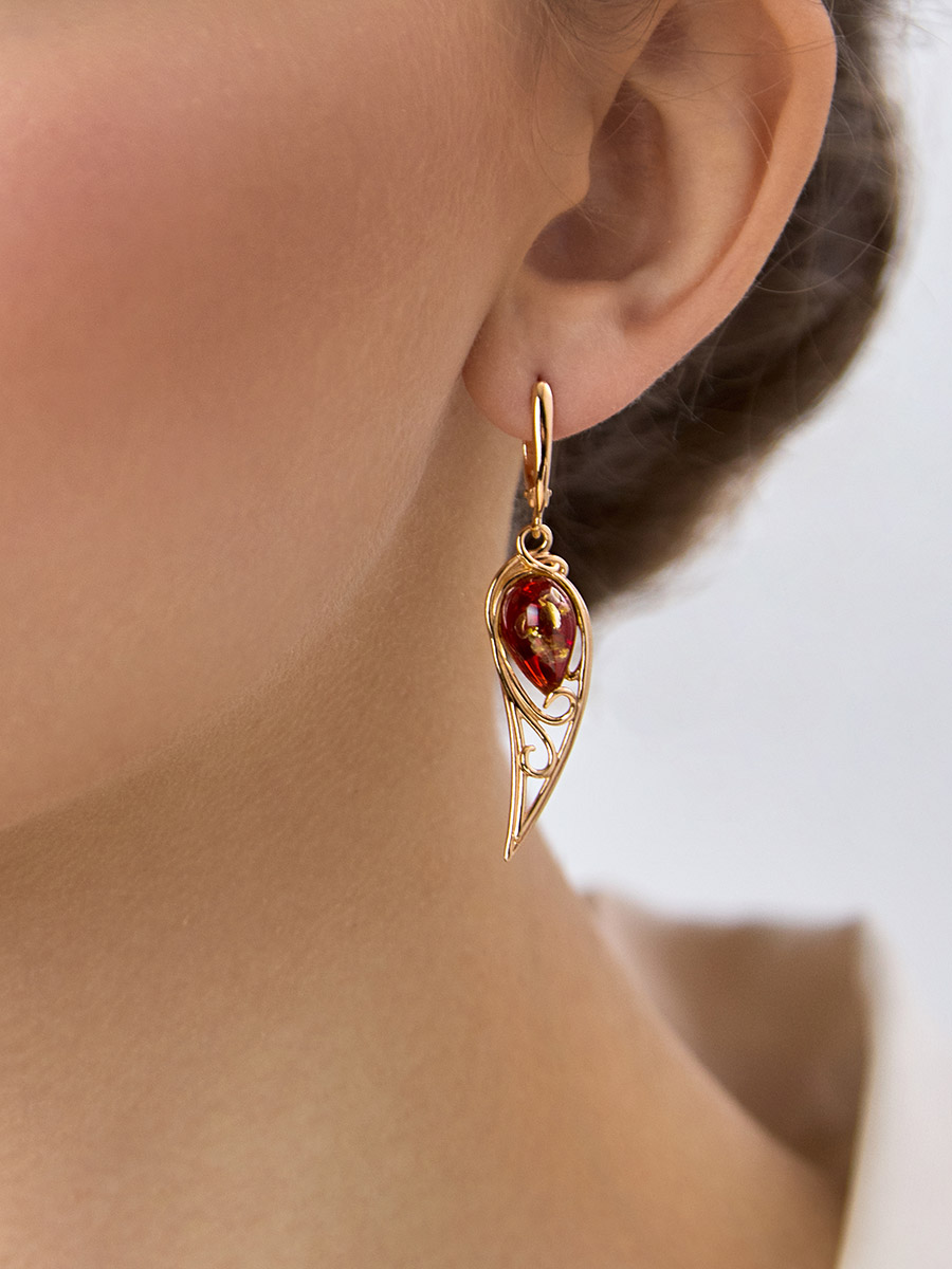 Изящные удлинённые серьги «Анбарин» из красного янтаря