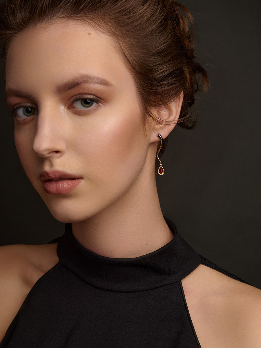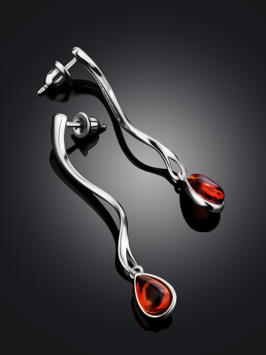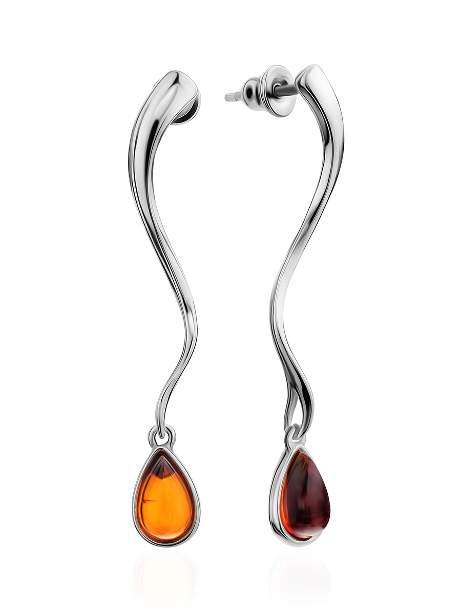 Изящные утончённые серьги «Блюз» из коньячного янтаря