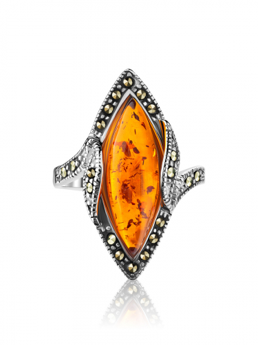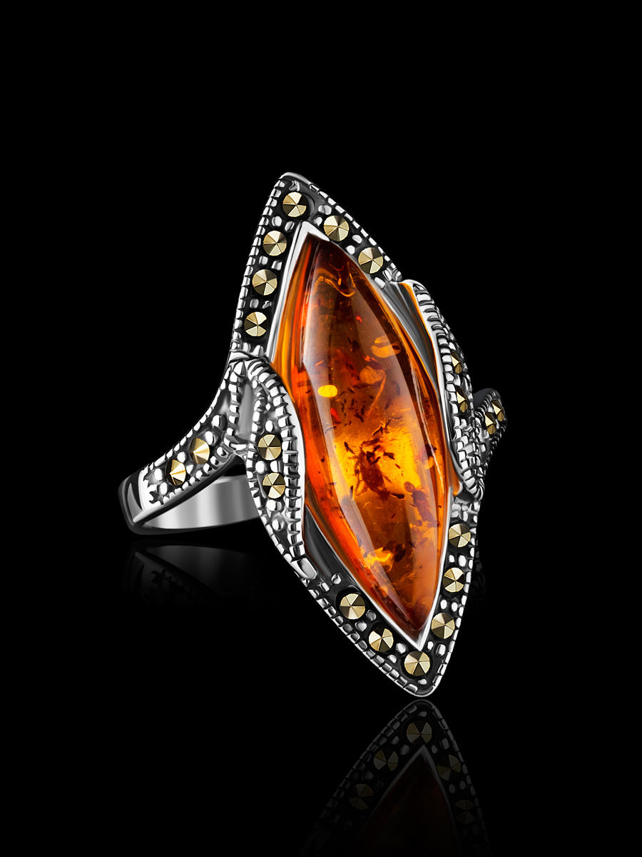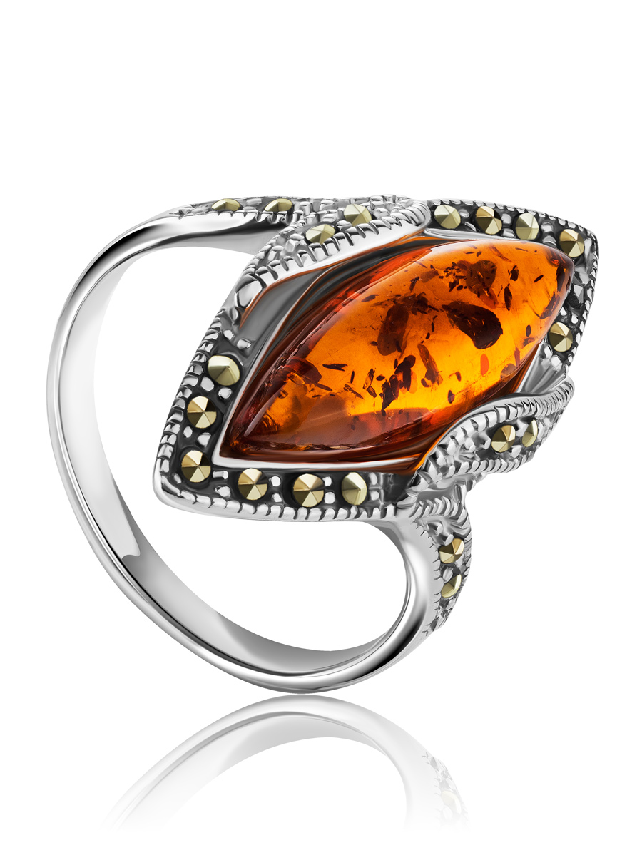 Изысканное кольцо «Эйфория», украшенное марказитами и янтарём
