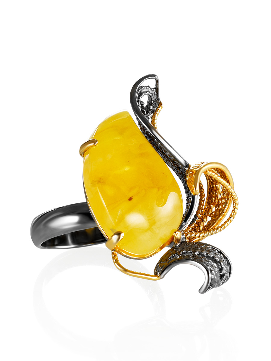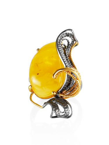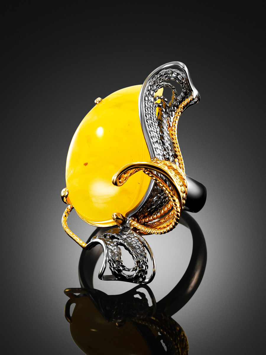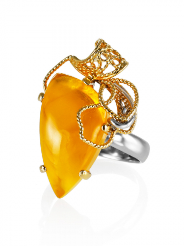 Изысканное кольцо с цельным янтарём «Филигрань»