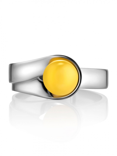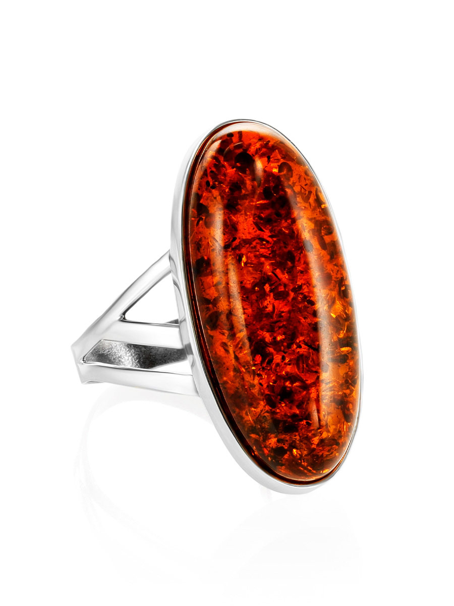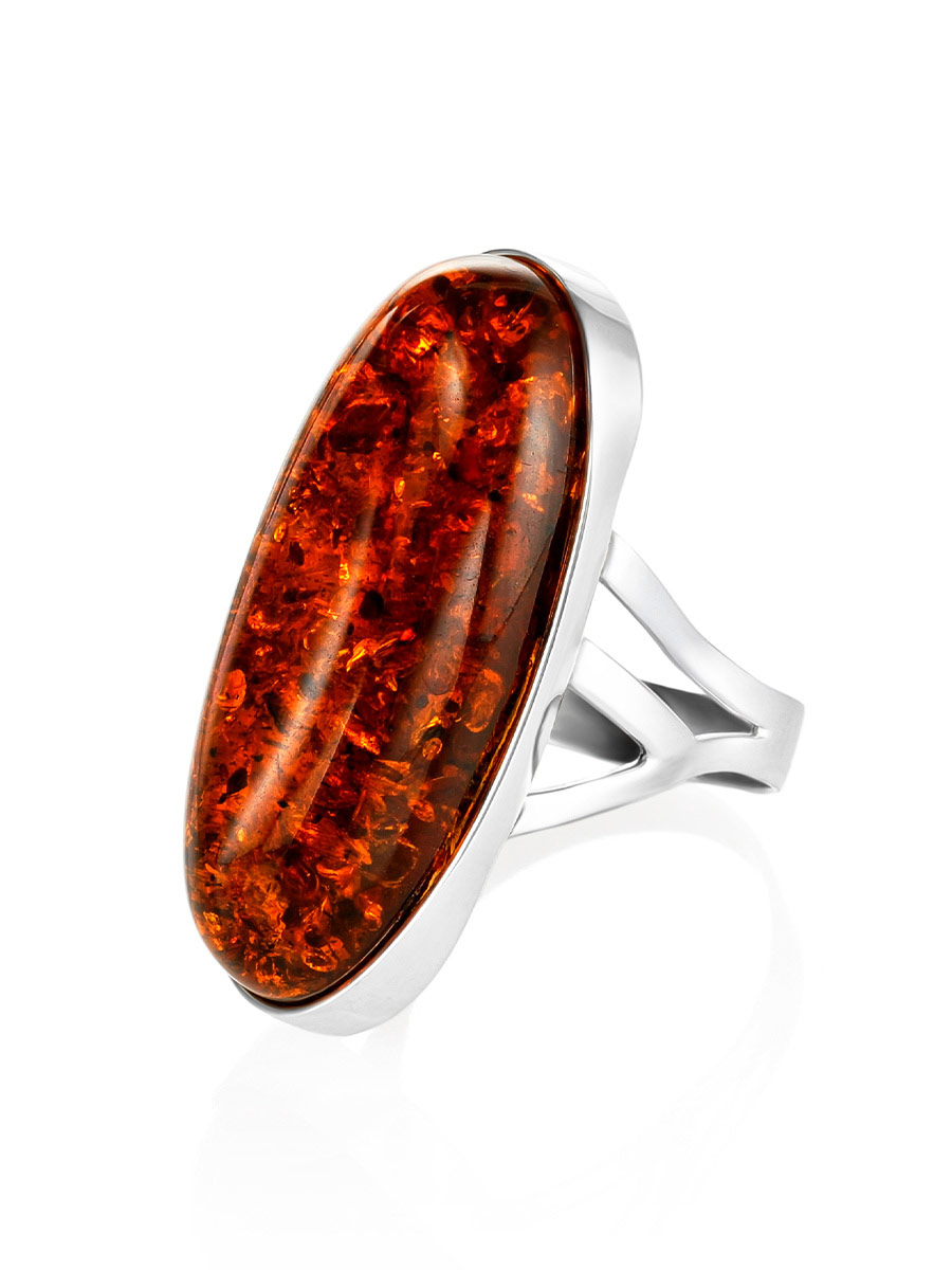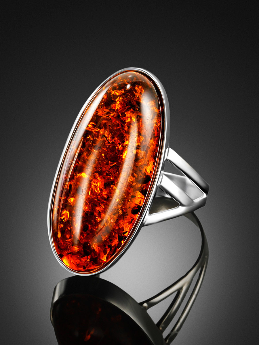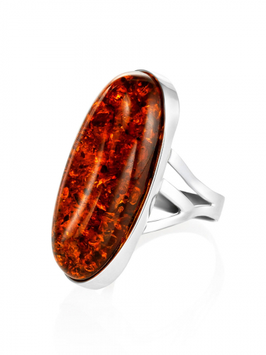 Изысканное кольцо с вставкой из искрящегося тёмно-коньячного янтаря