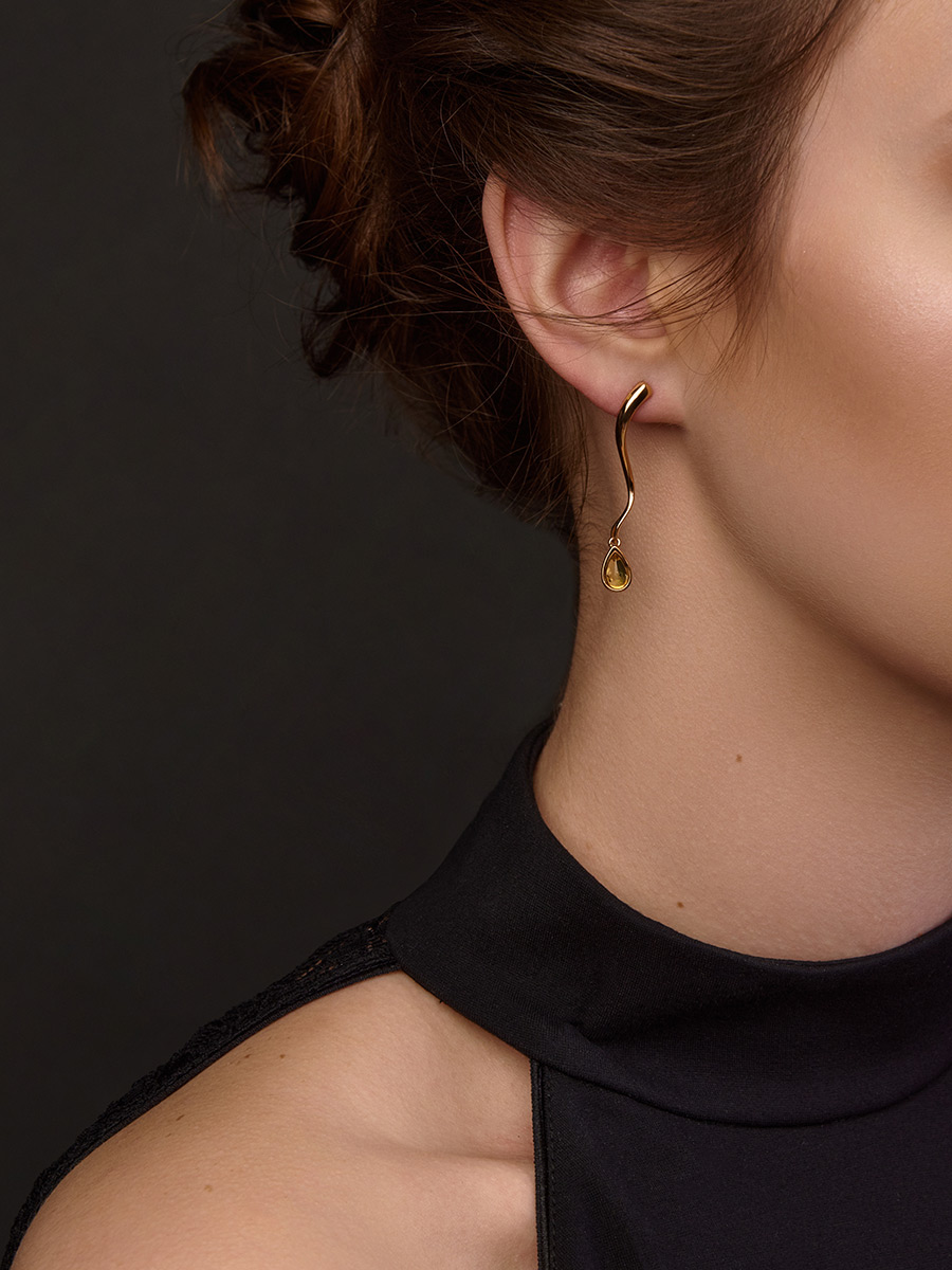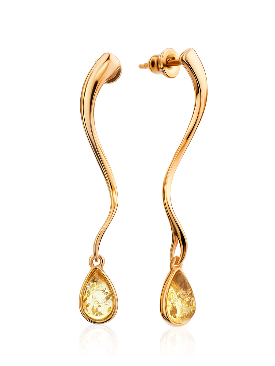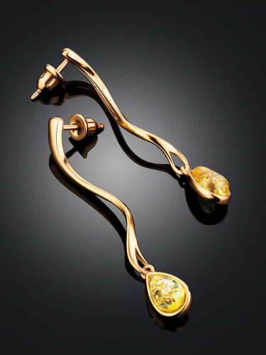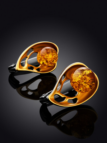 Изысканные серьги из позолоченного серебра и янтаря «Блюз»