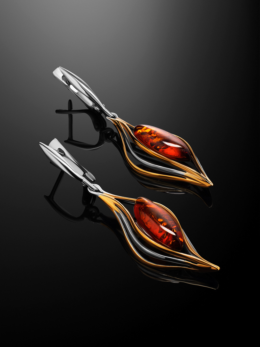 Изысканные серьги «Калатея» с сияющим коньячным янтарём