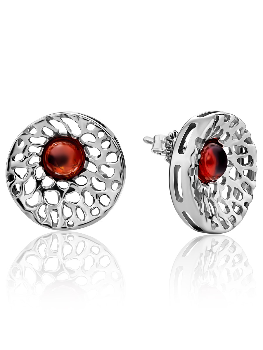 Изысканные серьги-пусеты с натуральным коньячным янтарём «Венера»