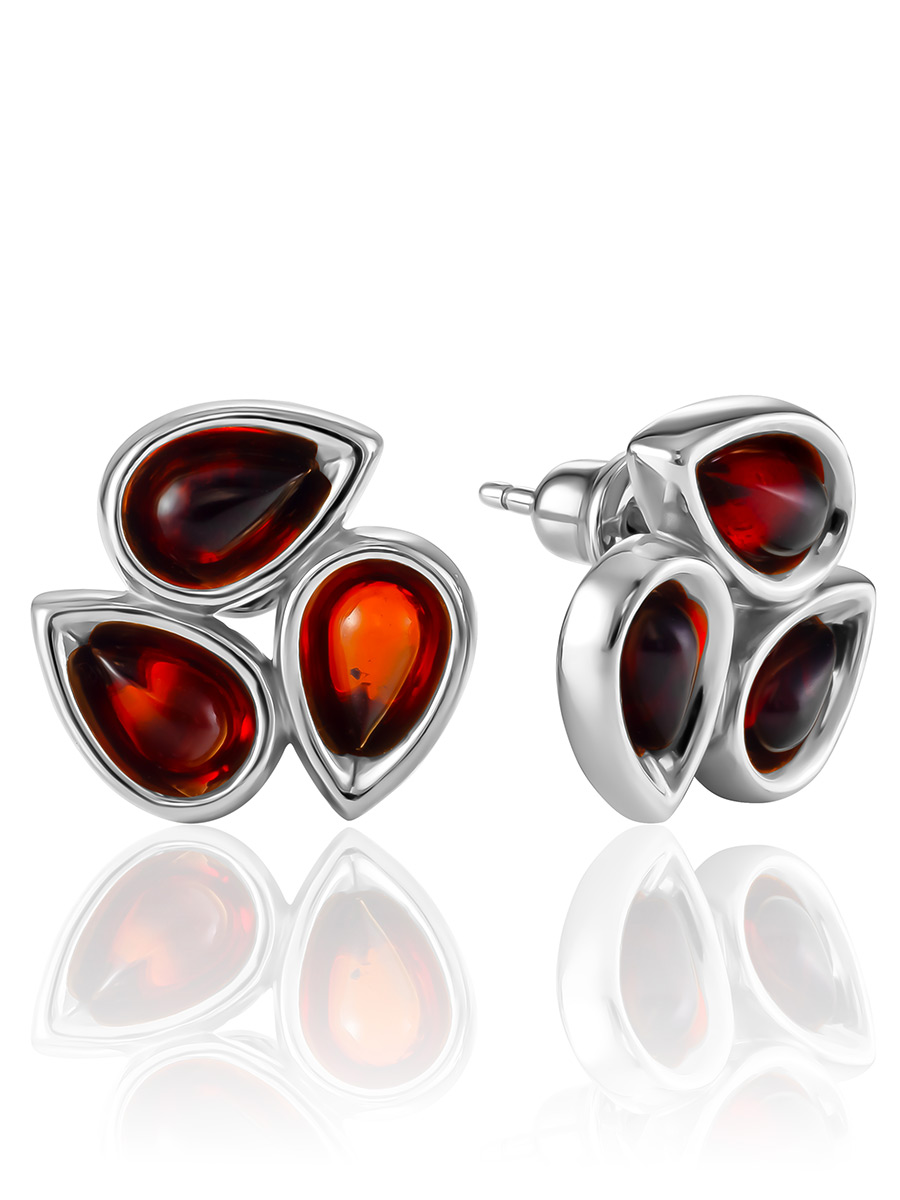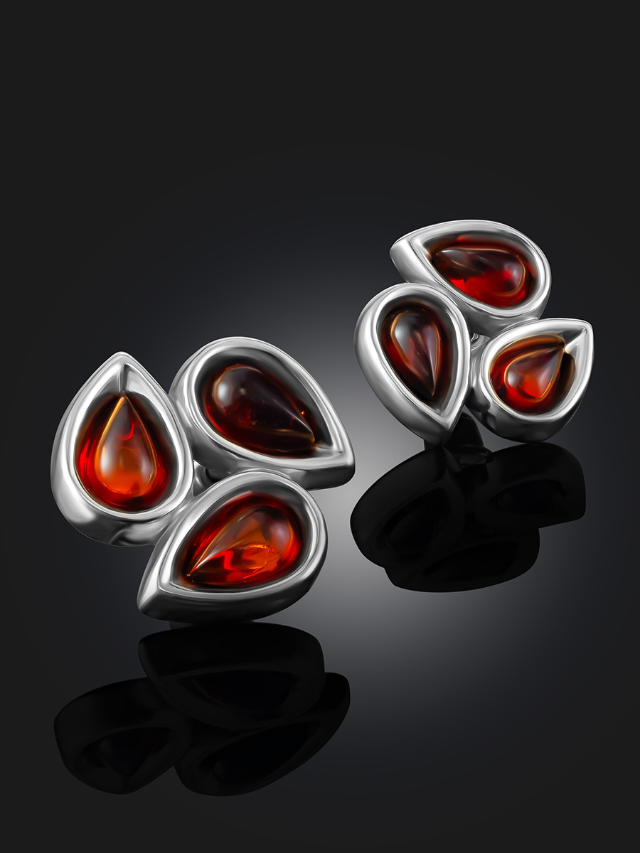 Изысканные серьги «Триада» с каплями из коньячного янтаря