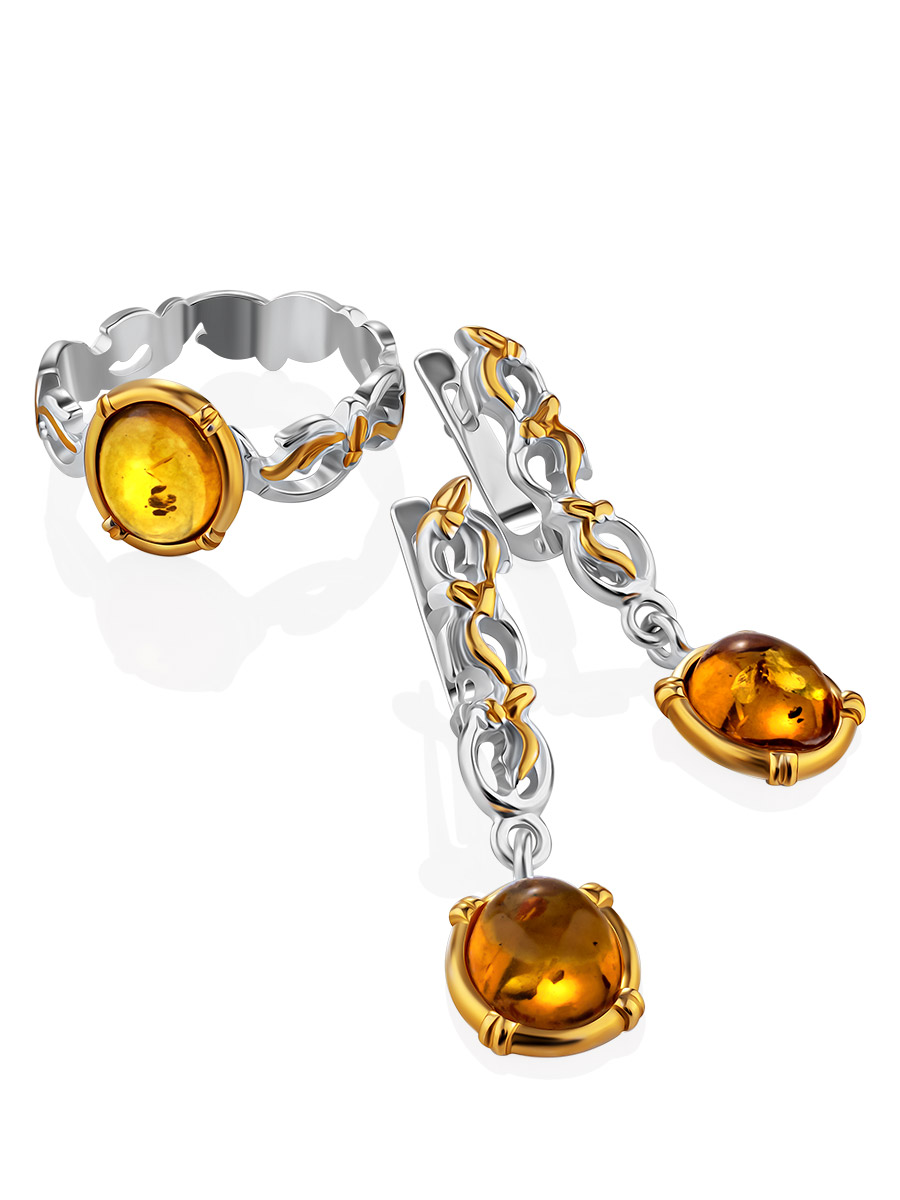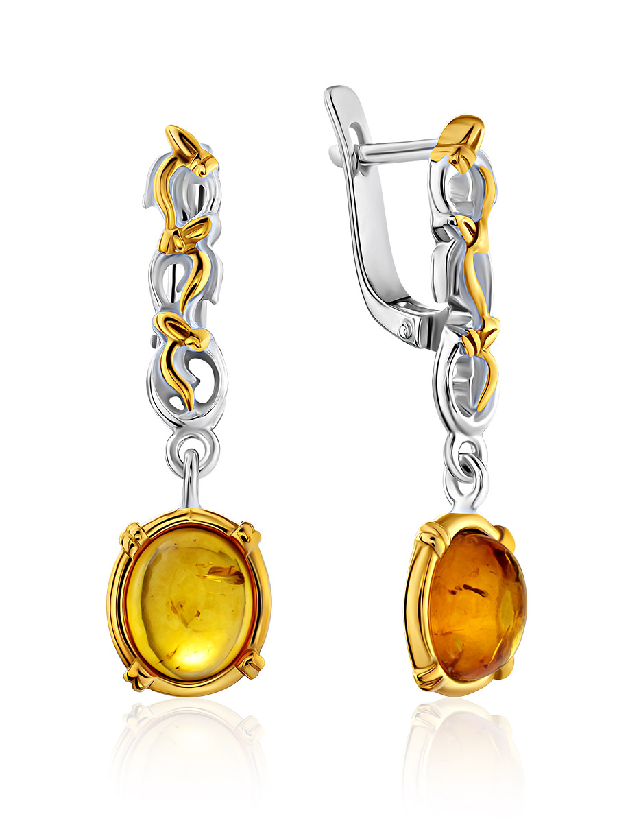 Изысканные серьги «Валетта» с янтарём золотистого цвета