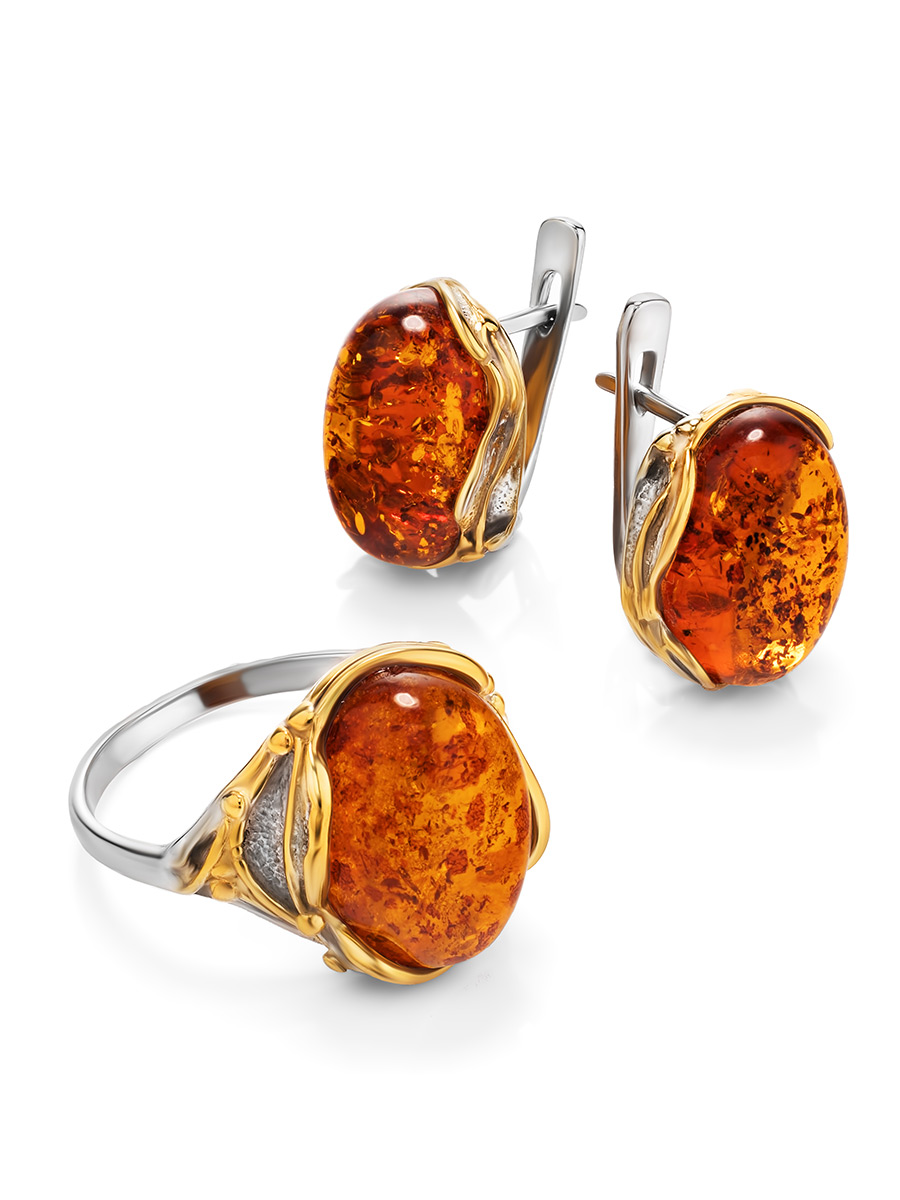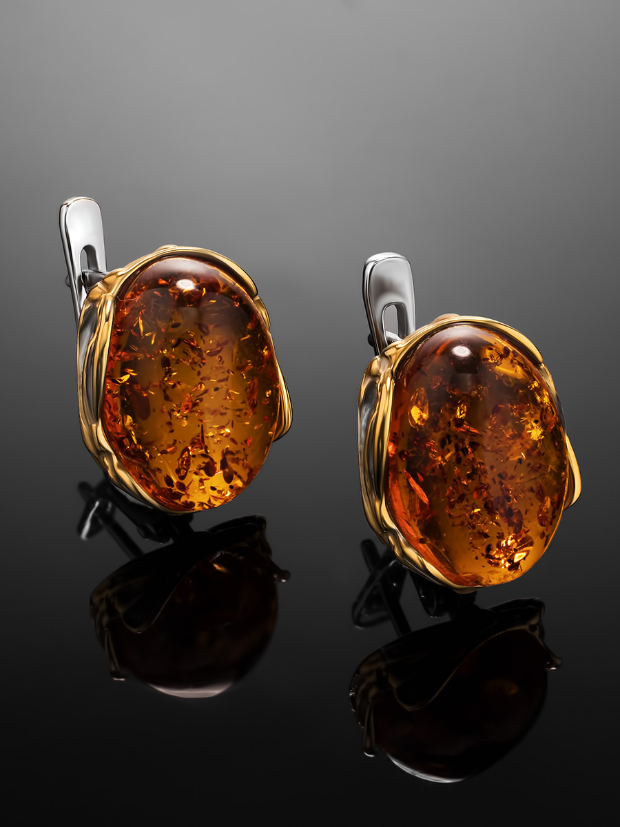 Изысканные серьги «Вирсавия» с янтарём коньячного цвета