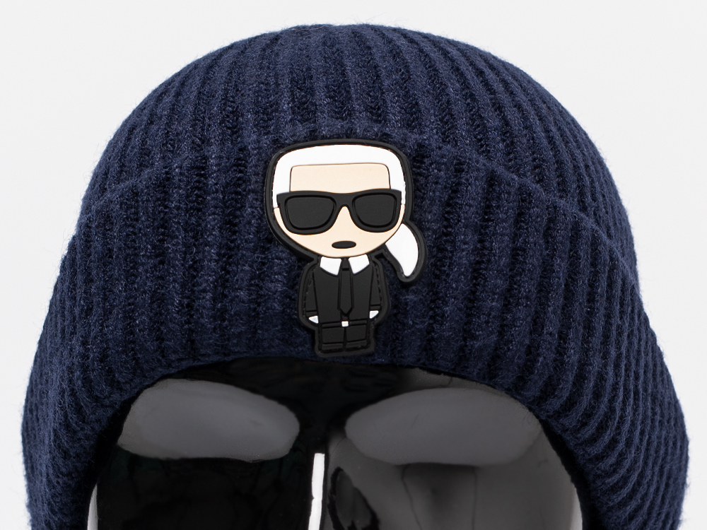 Шапка Karl Lagerfeld комфортно облегает голову и окутывает ее теплом. Модель