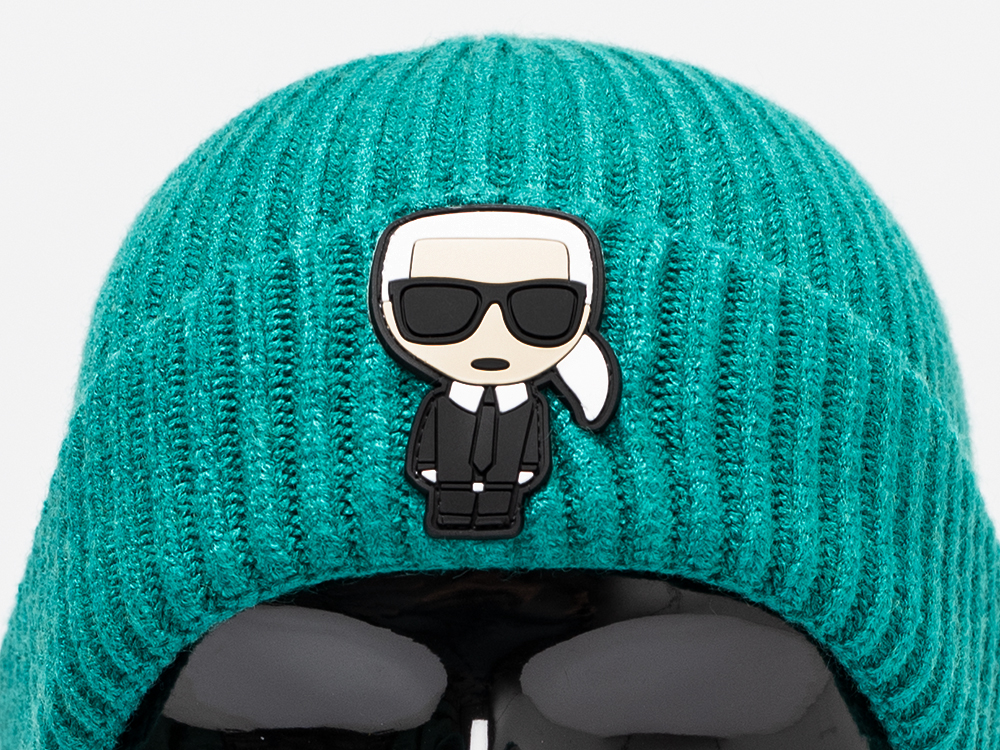 Шапка Karl Lagerfeld комфортно облегает голову и окутывает ее теплом. Модель
