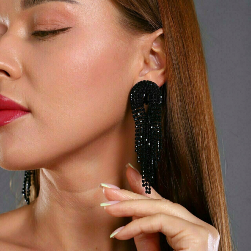 Описание Клипсы "Вечерние" женские цвет черный, камень красный. Размер: 9х2 см. Вес: 17 гр.