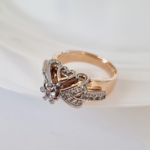 Кольцо 17 р ювелирная бижутерия коллекция "Дубай", покрытие позолота, вставка: фианиты, цвет: прозрачный, арт.314.852-17